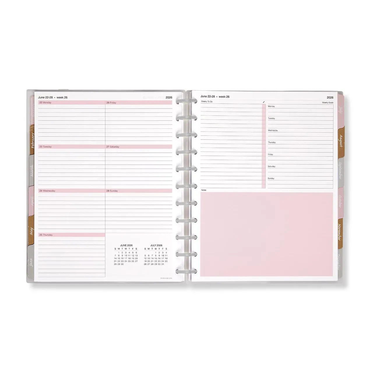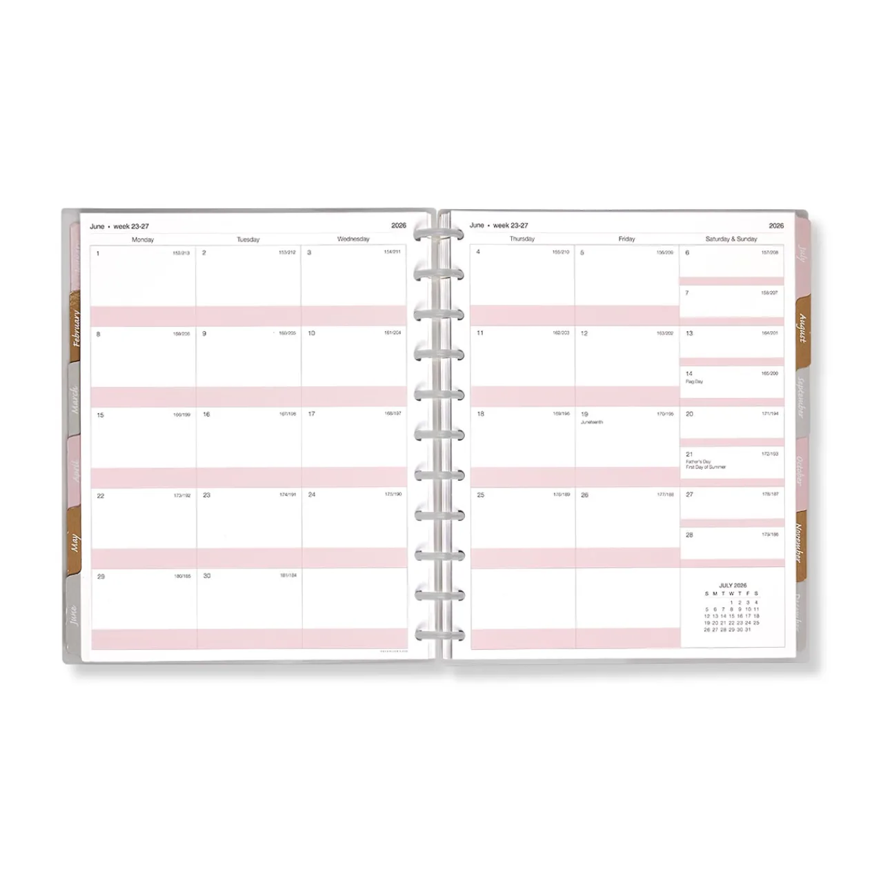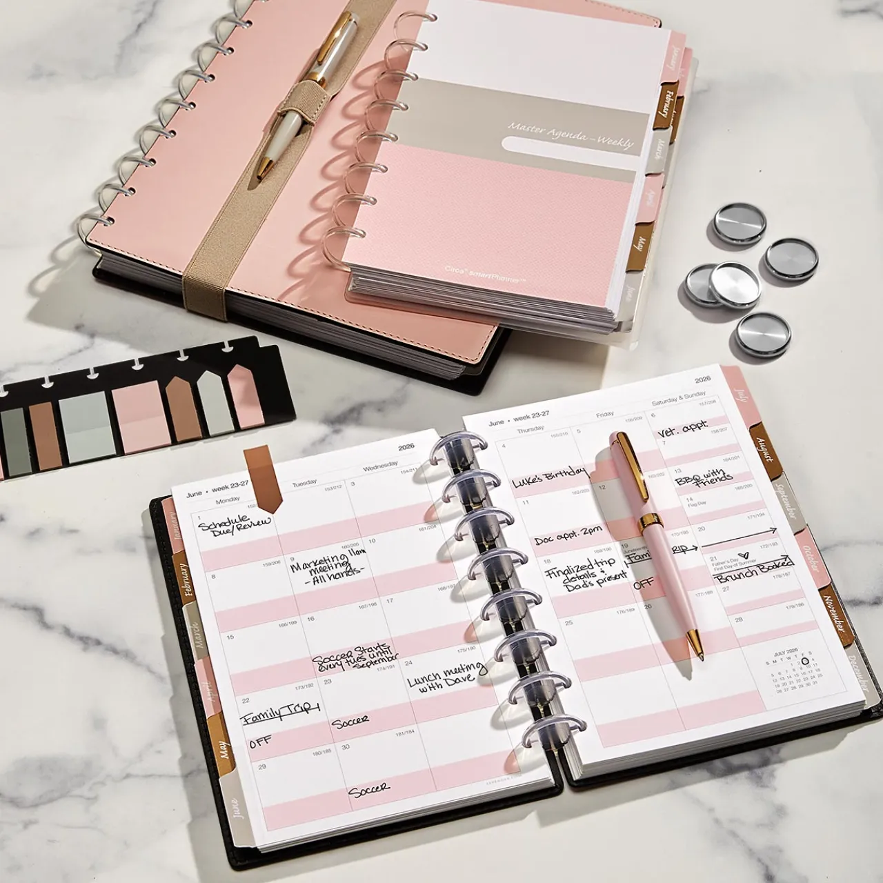 Presenting our most popular discbound Monday-start agenda in soft shades of pink and coral, with all the Circa® smartPlanner™ features customers love. This 2026 master agenda features weekly and monthly calendar sheets, monthly tabs and a perpetual calendar.