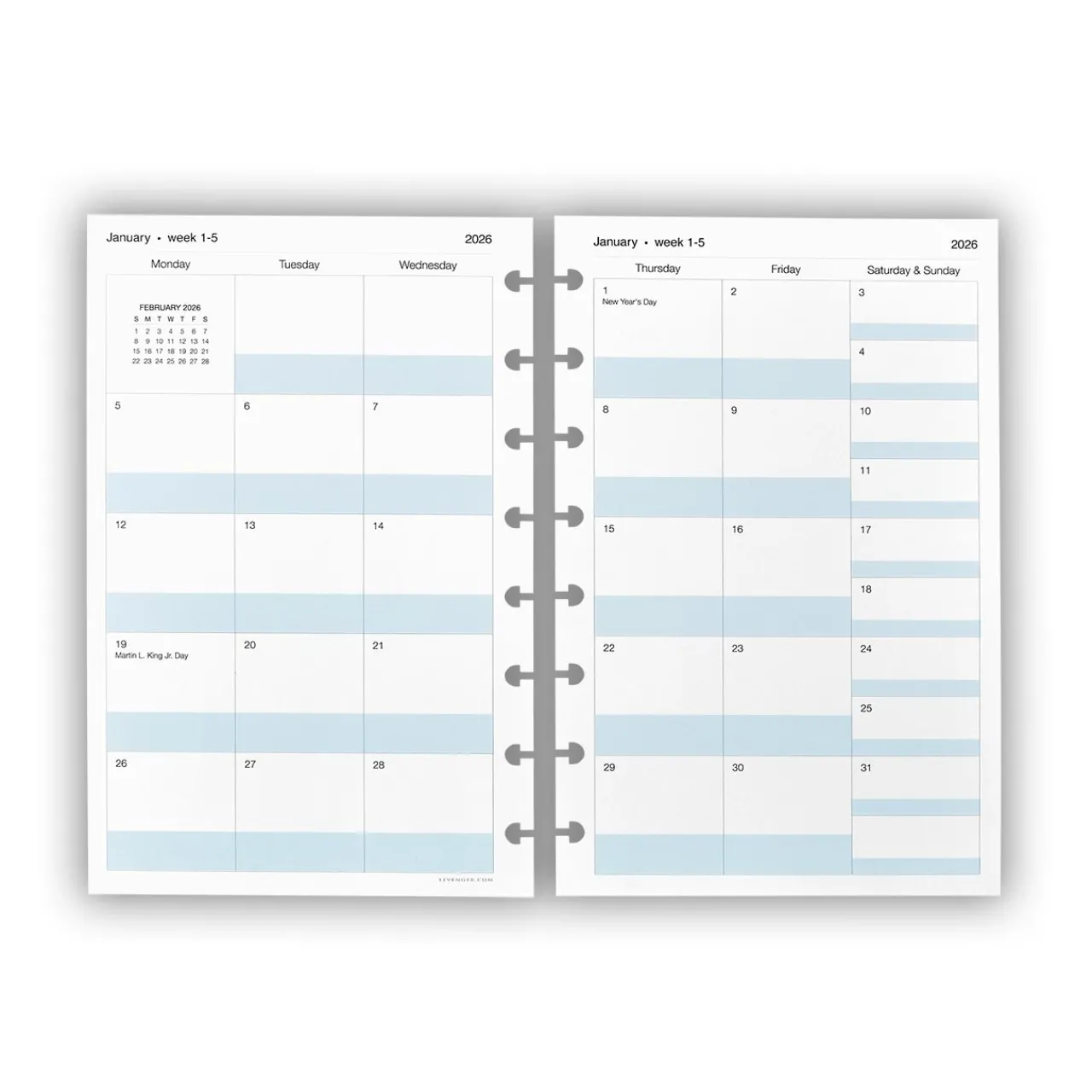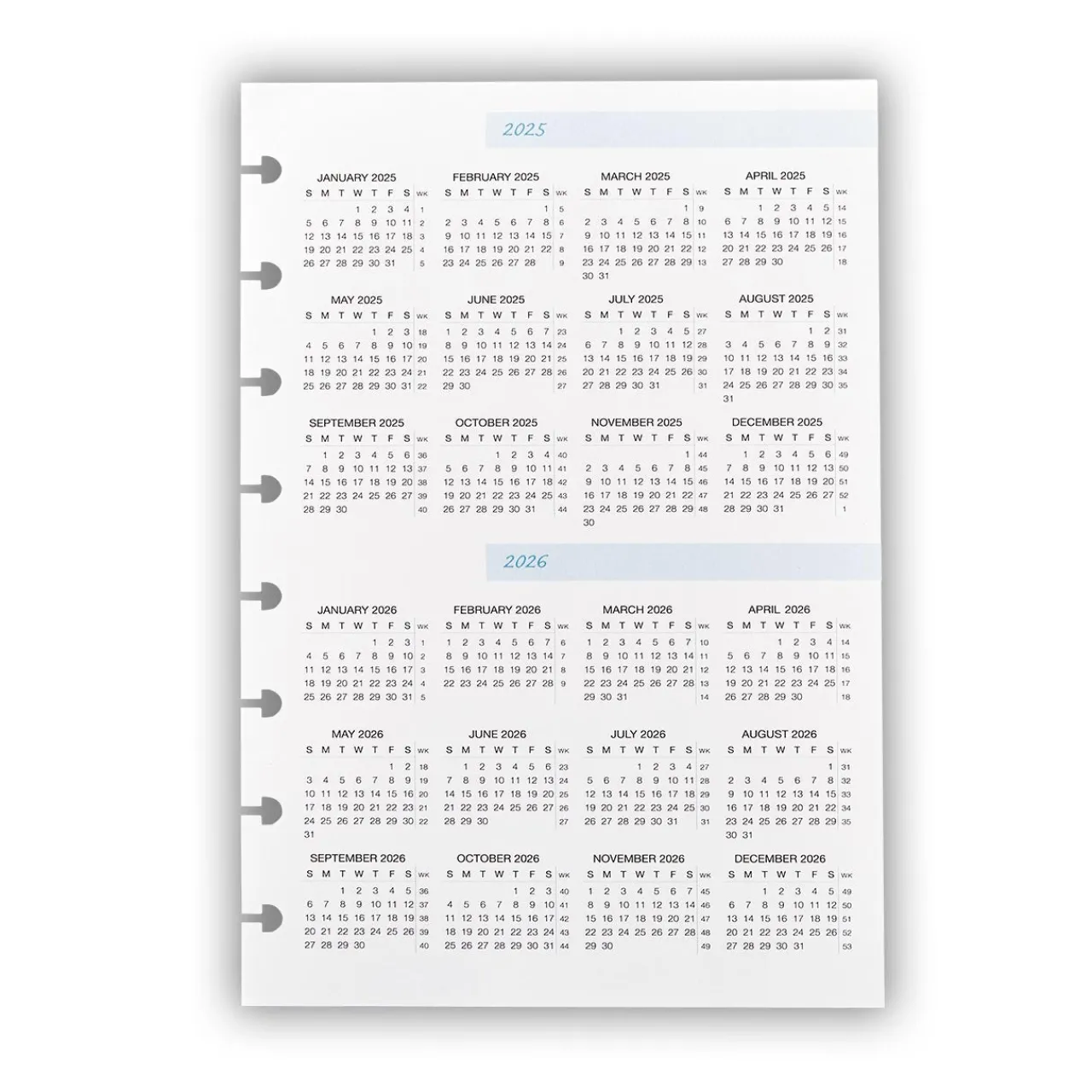 Our smartPlanner Slim refill for 2026 in junior size. A sleek, streamlined and pared-down version of our most popular Circa discbound planner, the 2026 Circa smartPlanner Slim Refill offers a two-page monthly spread, one page per week for meetings and appointments and a years-at-a-glance page for 2025, 2026, 2027 and 2028, plus a Notes and To Do checklist page following each monthly spread.