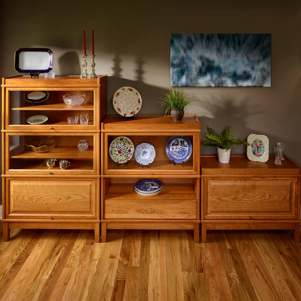 A double drawer for your Barrister Bookcase configuration. Long prized by attorneys and still made as they were more than a century ago, our Barristers meld steadfast tradition and space-saving solution. Unlike imitations of lesser quality, these are the original designs, crafted in solid, sustainably forested wood. To configure your Barrister cabinetry: Start building your Barrister from the bottom up with the . Then determine the type of storage sections you prefer—choose these double drawers, , a or a . Use as many sections as you need. Finish your configuration with the . Made in the USA.