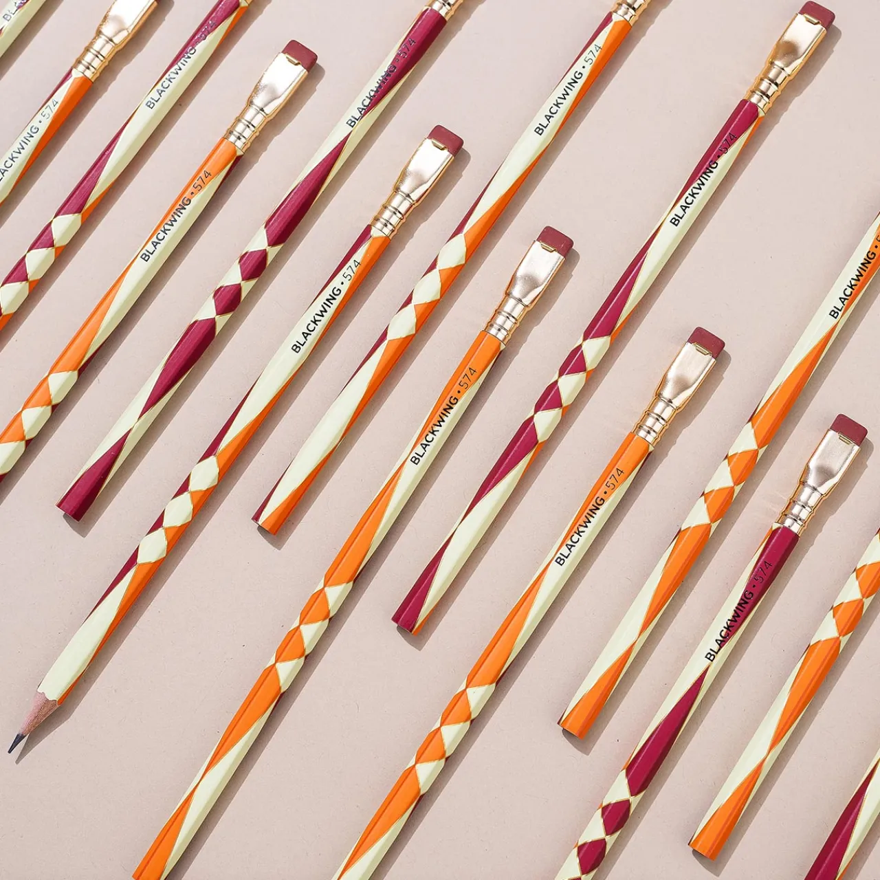 The Blackwing 574 honors the rich artistic traditions of the 574 Native American nations that preserve their culture and identity through creative expression. Designed in collaboration with Kaw, Osage, Lakota artist Chris Pappan, the pencil features bold geometric patterns inspired by Indigenous art. With firm graphite for a smooth writing experience, this limited edition set pays homage to the beauty and significance of Native American artistry. A portion of proceeds supports the Cheyenne River Youth Project, fostering arts programs for Lakota youth on the Cheyenne River Sioux Tribe Reservation. Set of 12.