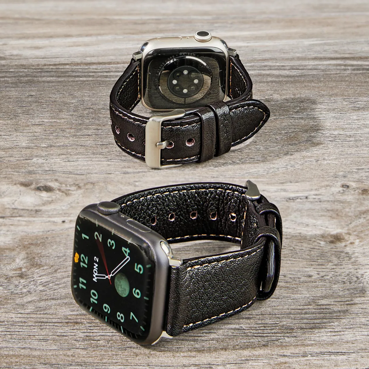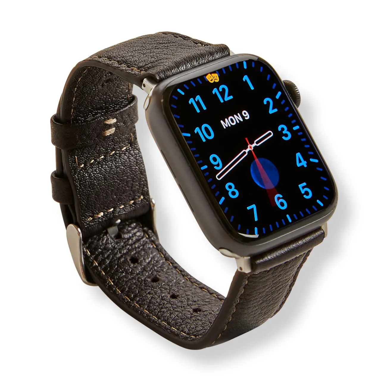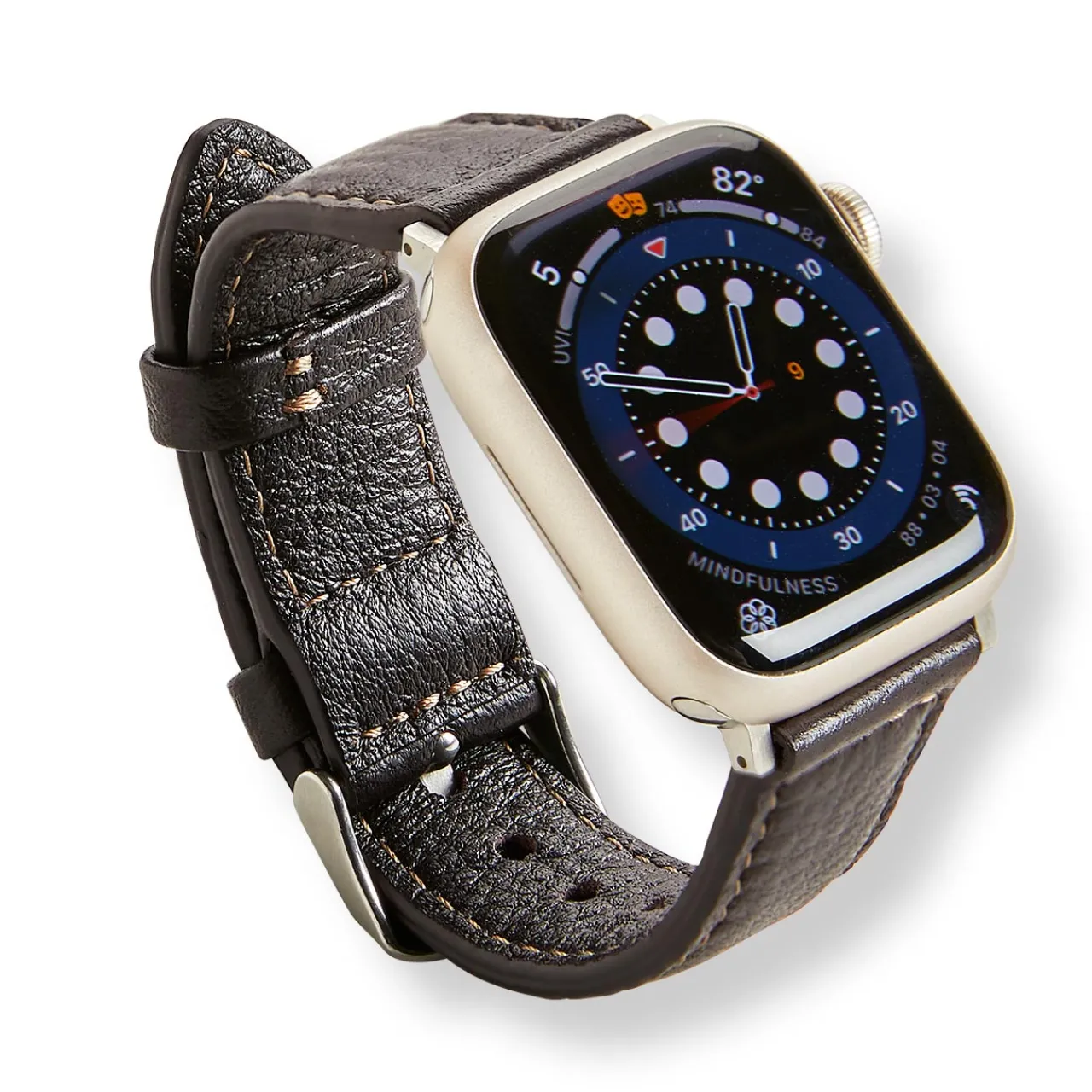 Upgrade your Apple® Watch with a strap in our premium, full-grain Bomber Jacket mocha leather. Our adjustable leather Apple Watch band sports a brushed silver buckle and hardware to create an elegant and understated look that goes from casual to formal, day to evening.