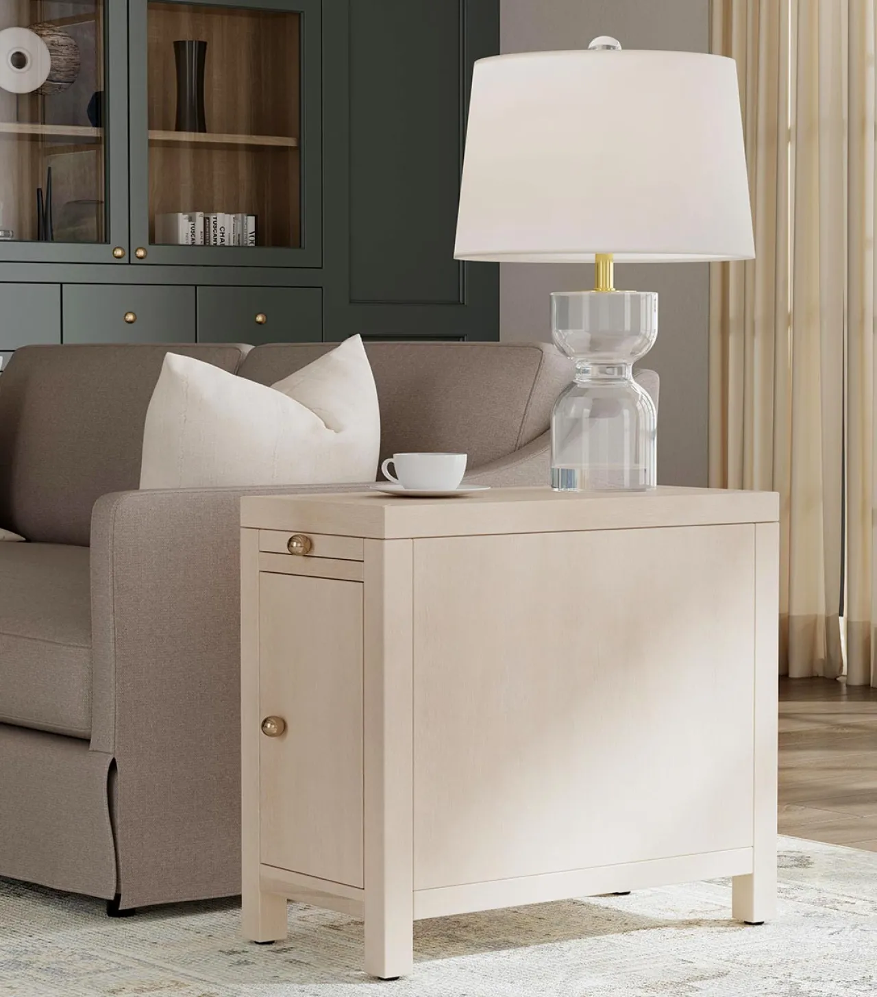 This Product Ships Free. Enhance your space with a stylish and functional end table designed to complement almost any decor. Whether placed beside a sofa, nestled between accent chairs, or used as a bedside companion, this elegantly crafted storage table brings both charm and practicality to any setting. The pull-out tray provides additional surface space when needed, perfect for holding drinks, books or decorative accents, while the soft-close door conceals storage to maintain a clutter-free aesthetic.