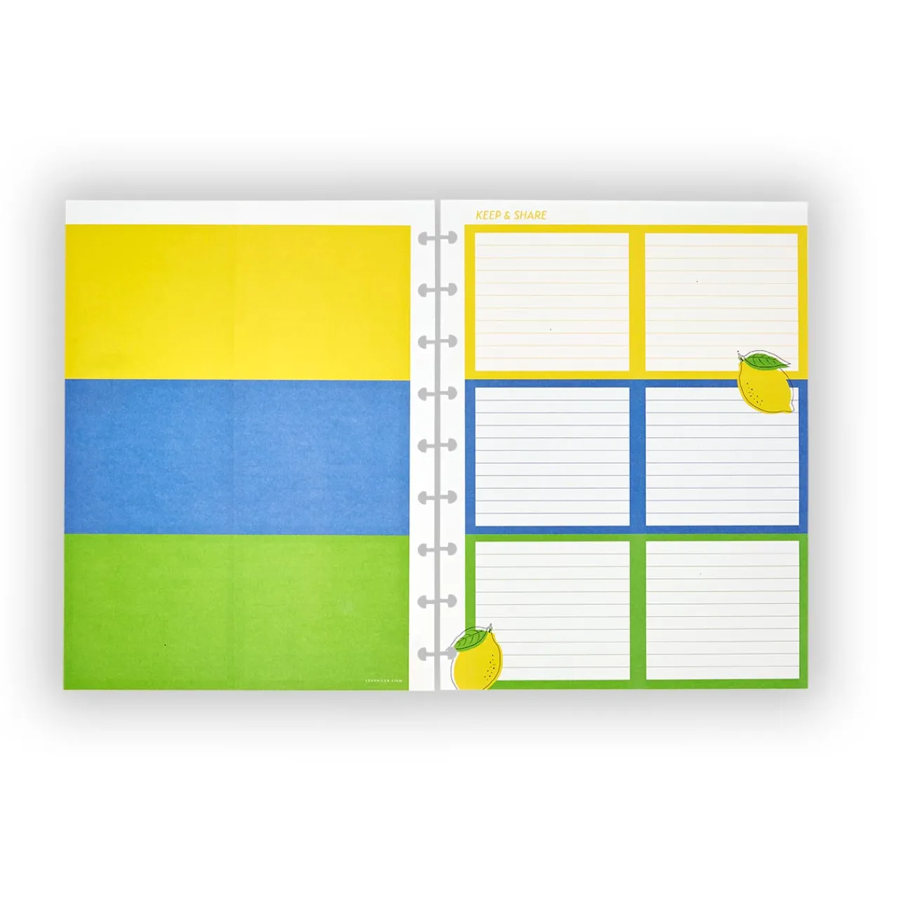 These limited edition Circa® Lemonade detachable notes are an organized delegator’s dream—you can keep a record of the tasks you’ve assigned right in your notebook. The three boxes on the right of each page are perforated so you remove the cards to share with a helper or take with you. The three boxes on the left are Circa-punched and unperforated to leave as a record in your notebook. Ideal for to to-do lists, shopping lists or important reminders.