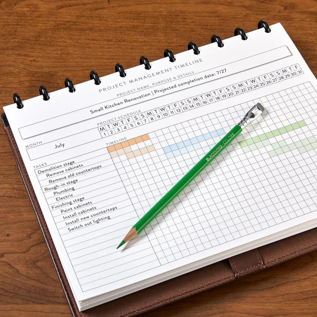 Harness the Gantt system of project management with this Circa® discbound refill in a horizontal format. The Gantt chart is a visual project management tool that uses a bar chart to track tasks, timelines and accountability, ensuring efficient planning and progress monitoring. Henry Gantt (1861–1919), an American mechanical engineer and social scientist, designed the system in the 1910s.
