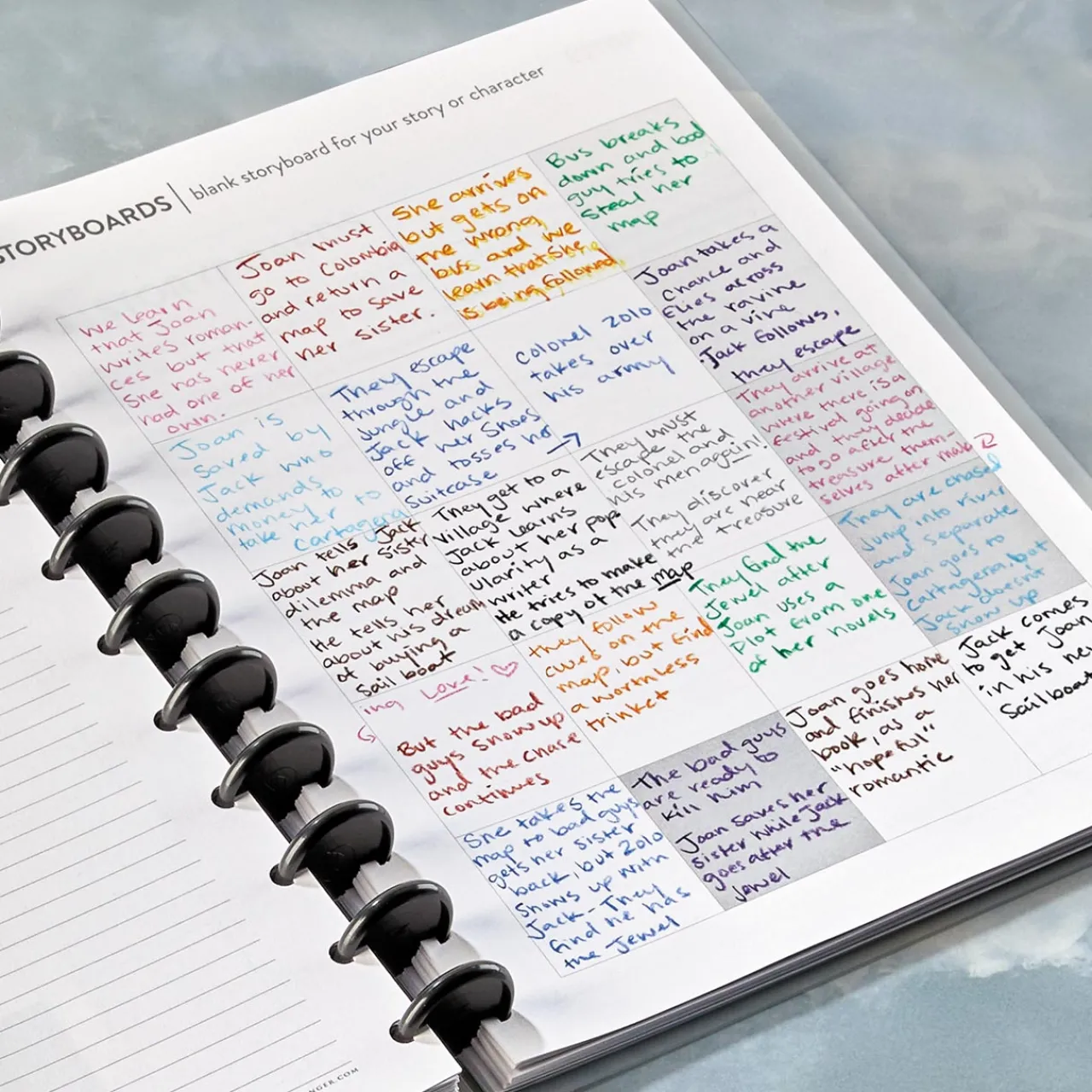 Acclaimed writing instructor Sue Viders, author of the best-selling Circa® Writing a Novel Workbook, presents another vital tool for writers crafting an original story. Her Storyboard Refill provides a visual map where you can see the overall picture of your story arc at a glance—from inciting incident, setting up of plot points and development of story to climax and resolution. Also included are instructions for use, several completed storyboard examples and tips from Sue. Use this Circa storyboard refill in tandem with your (available separately), or in any letter-size Circa discbound notebook to enhance your creative story-building projects.