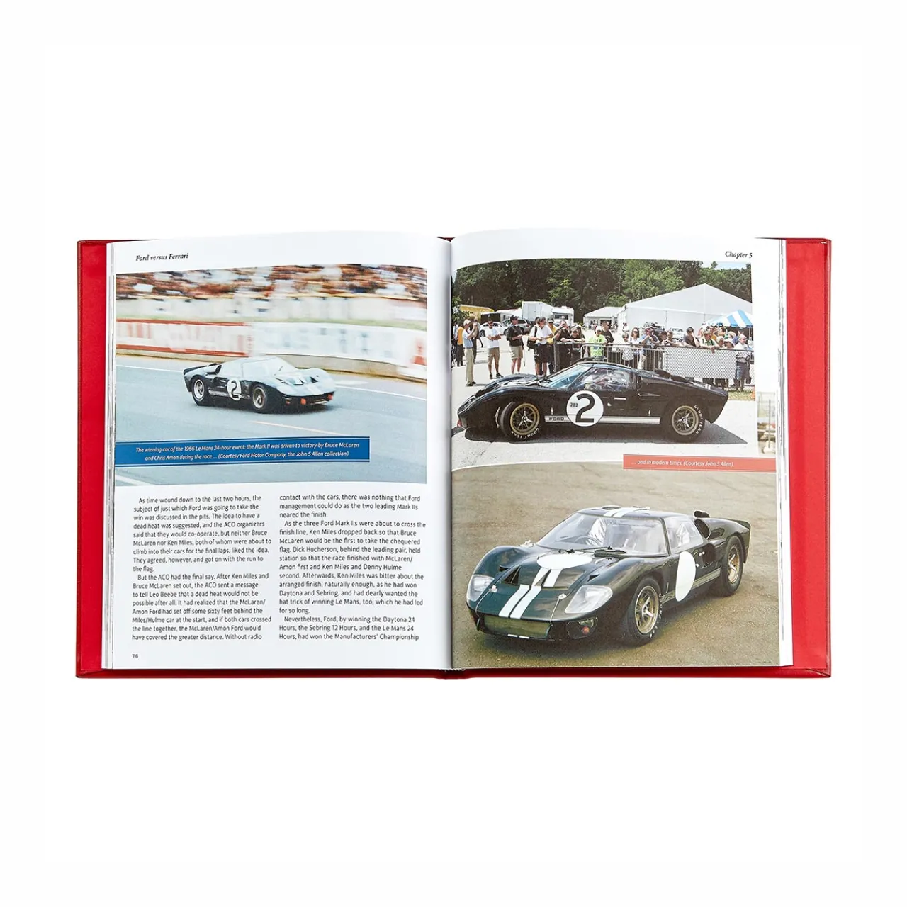 What happened when America’s richest car company, producing thousands of cars per year, went head-to-head with Ferrari of Italy in the mid 1960s? This is the story of Ford versus Ferrari. Enzo Ferrari, whose company produced fewer than four hundred cars per year in 1963, wasn’t going to bow to Ford after he had turned down Ferrari’s offer to buy his company. The only place left to duke it out was on the racetracks of the world… and one in particular: Le Mans ’66. The perfect gift for any car enthusiast, this red leather-bound edition of Ford versus Ferrari adds vintage appeal to your bookshelf. Made in the USA.