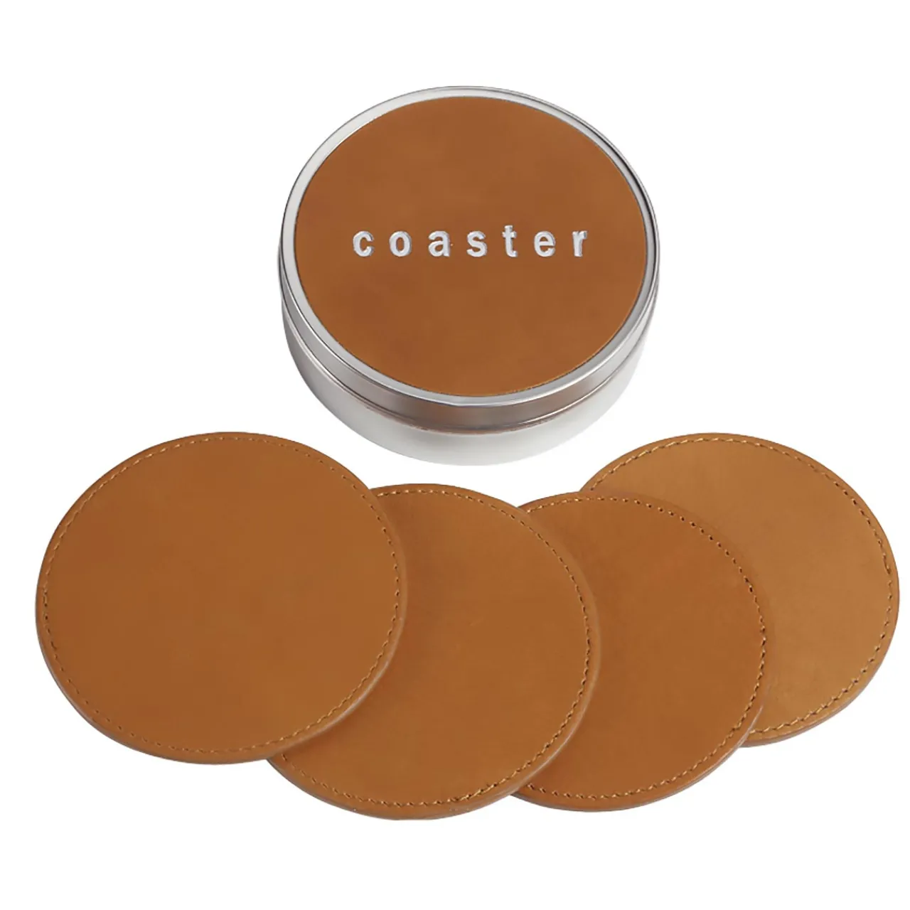 – Set of 4 full-grain leather coasters