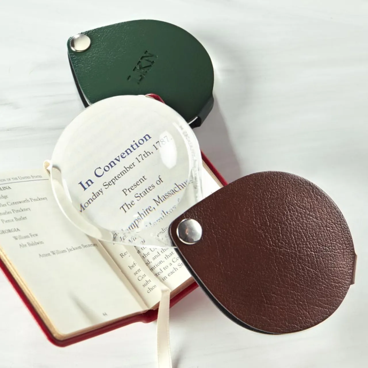 A handy pocket magnifier and leather case. A magnifier comes in handy for deciphering maps, reading the menu in dark restaurants, studying the financial columns in the Wall Street Journal and other kinds of close work. Our top-of-the-line Leather Pocket Magnifier is a convenient portable size, so you can easily slip it into a pocket, bag or briefcase. The precision 3.5 biconvex Eschenbach lens, made in Germany, provides virtually distortion-free, crystal-clear clarity. Made of a lightweight acrylic, the lens offers an optical quality comparable to glass but more durable. The genuine leather cover is lined in protective microsuede to keep your lens scratch-free.