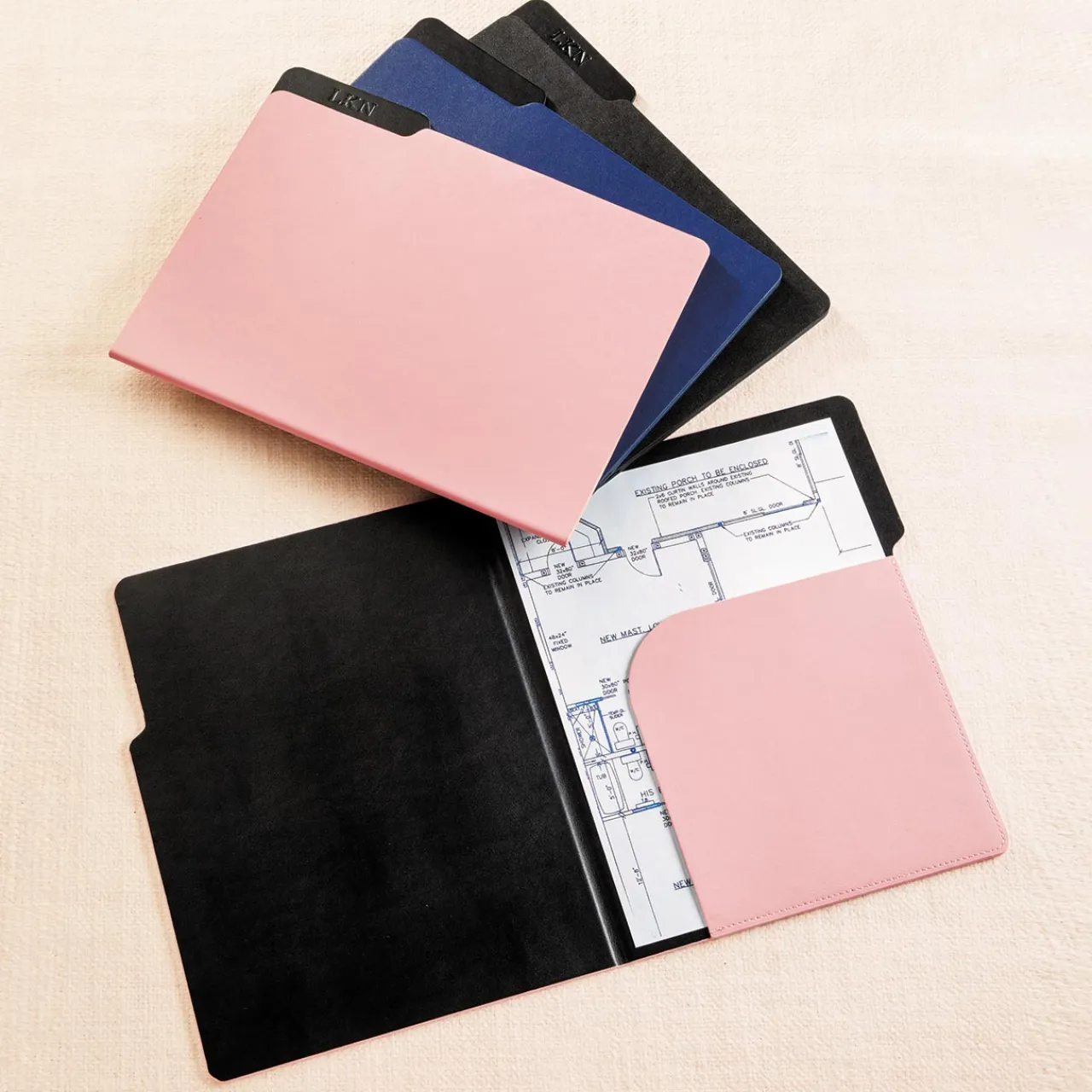 Smooth, beautifully crafted leather alternative file folder. Give important documents the attention they deserve with this durable smooth LevTex™ folder, made with a sleek design and professional feel. Add an optional monogram to personalize.
