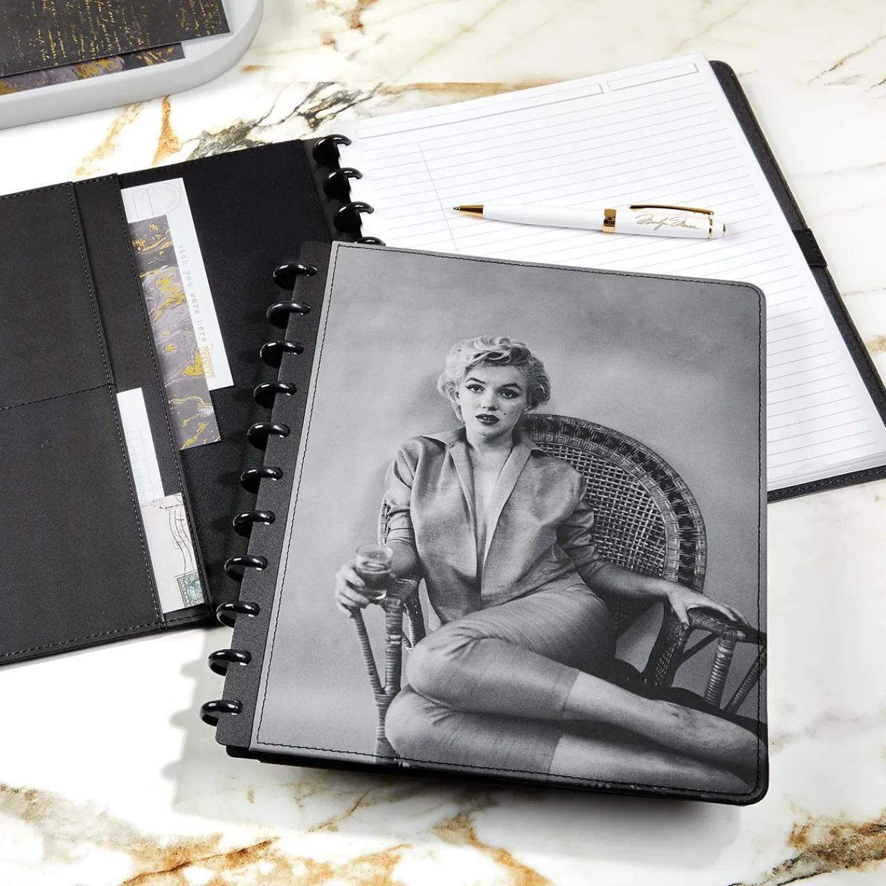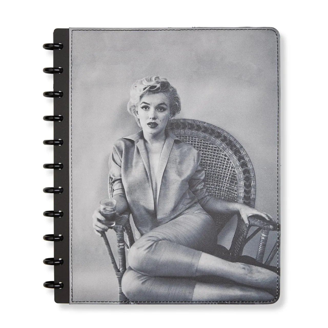 Perhaps more than any other photographer, Milton H. Greene (1922–1985) was able to reveal the many moods of the woman known to the world as , capturing countless facets of her personality beyond mere glamour or ‘cheesecake.’ Quickly becoming a close confidant and advisor, Greene would also serve as her producing partner and Vice President of Marilyn Monroe Productions, which produced her films Bus Stop and The Prince and The Showgirl. The cover of this unique Circa® notebook is from a 1954 photo session, known as “The Wicker Chair Sitting.” Greene’s evocative photography of Monroe brings to mind Shakespeare’s quote from Antony & Cleopatra: “Age cannot wither her, nor custom stale her infinite variety.” Letter size.