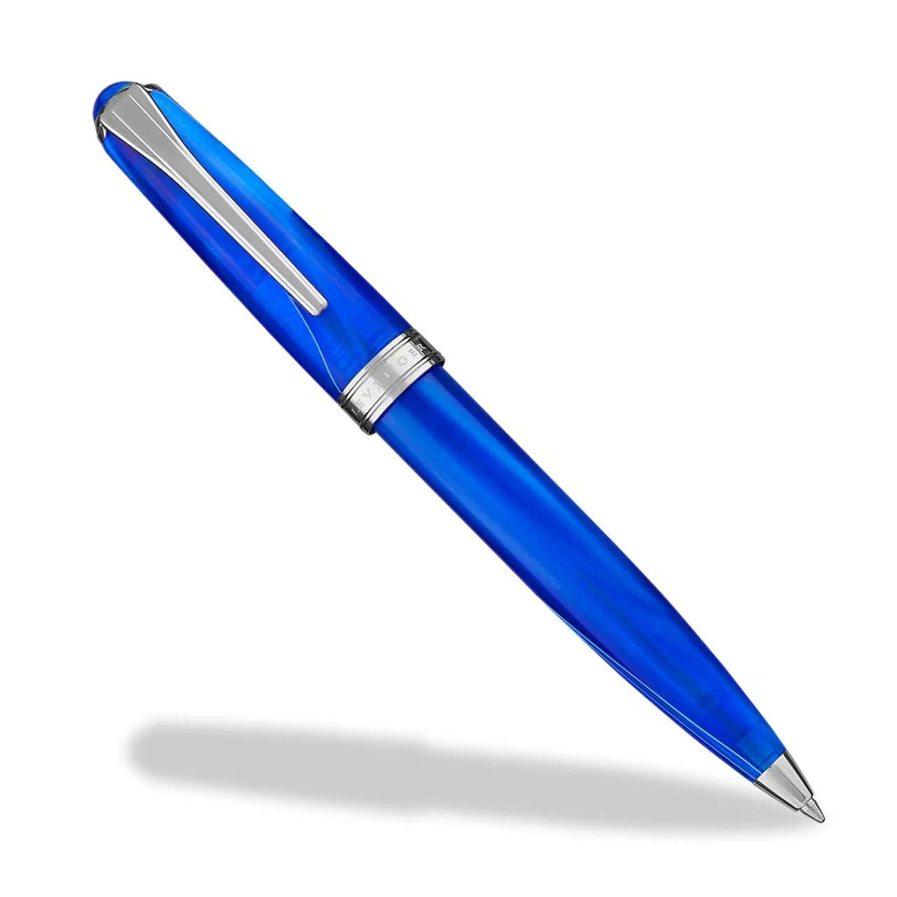 – True Writer Classic Seafarer Atlantic Rollerball Pen in hand-turned blue resin with chrome trim and appointments, 5 3/8L x 9/16 diameter; .52 ounces