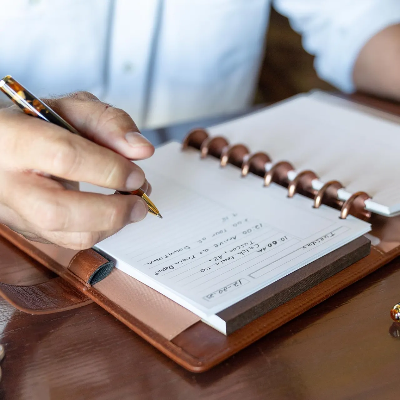 Business meetings and Circa® note-taking are bound to be more pleasurable and productive when you carry the Montana Circa Folio. Crafted to last a lifetime in deliciously soft textured Argentinian leather, this is a a leather portfolio of understated elegance and superior durability. It includes both a Circa Translucent Annotation Ruled Notebook and a Freeleaf® Annotation Ruled Pad, so you’re fully prepared to take copious notes. Junior size. Personalize it with an optional 3-initial monogram or full name up to 16 characters.