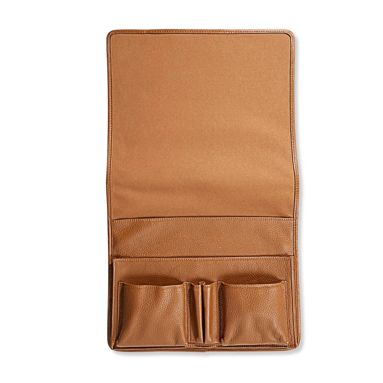 If you love reading in bed, this take-with-you caddy, crafted in soft leather, tucks sweetly under the mattress—and it’s equally useful thrown over the arm of a sofa or chair. Keep your reading materials, eyeglasses, journal and pens close at hand at bedtime, or use in the TV room to hold magazines, newspapers and all the remotes, too. Crafted in our lusciously soft full-grain leather and lined in microsuede to keep tools protected, the Bedside Companion helps minimize clutter on desks and nightstands and makes your essentials fully portable.