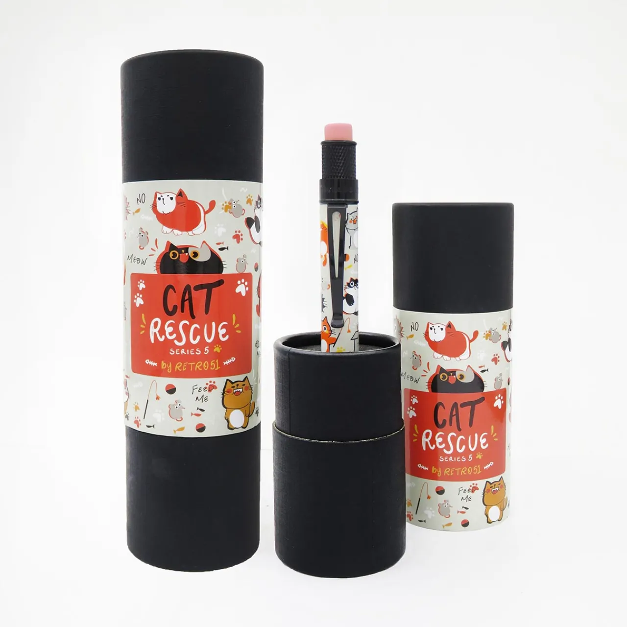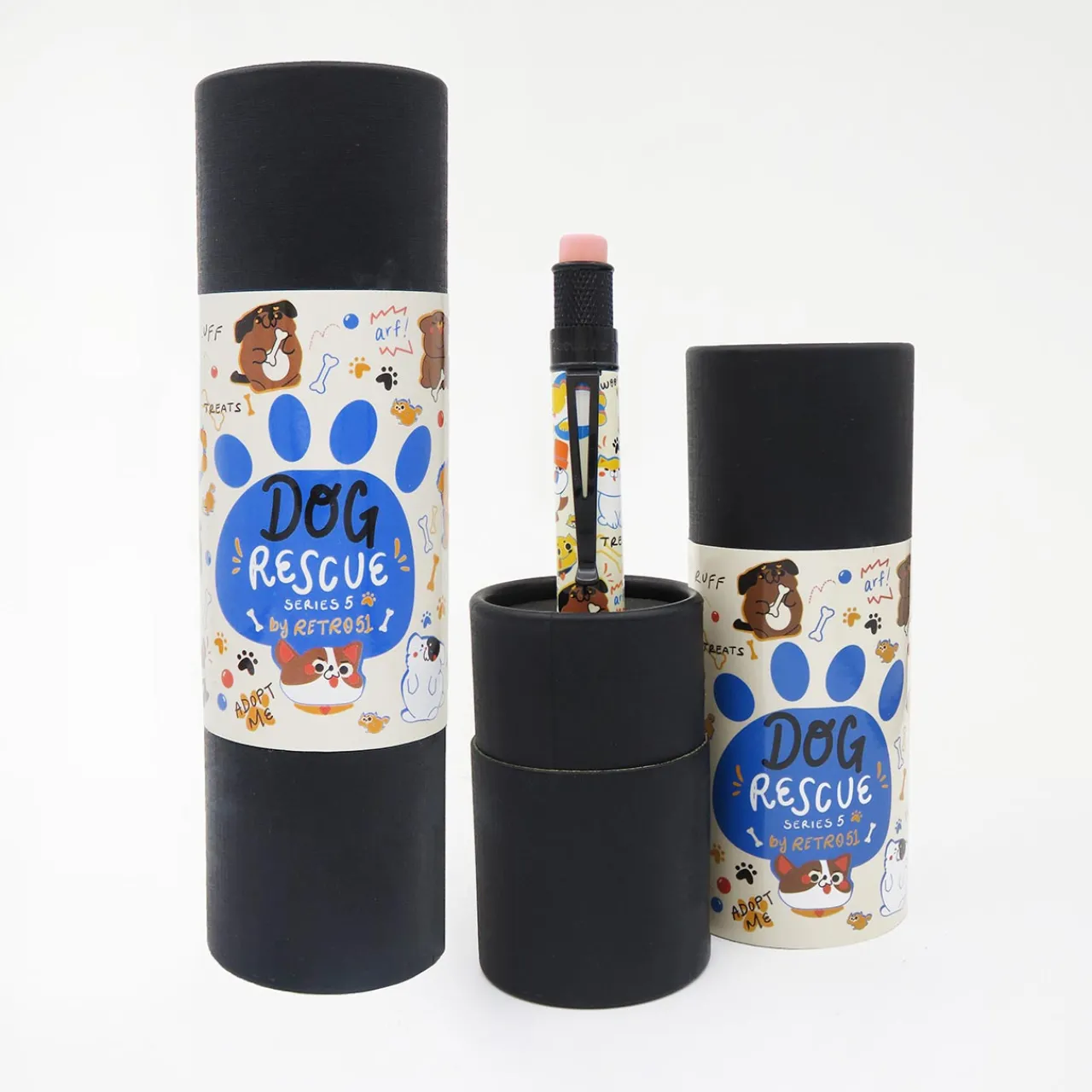 Introducing the latest Rescue mechanical pencil from Retro 51, featuring the most irresistibly cute dog and cat illustrations. Vibrantly illustrated, finished with a glossy clear coat and complemented by sleek Black Stealth trim, these charming pens add a touch of whimsy to your writing experience. With each purchase, a contribution will be made to Take Me Home Pet Rescue, a Texas-based nonprofit dedicated to addressing homeless pet overpopulation and finding loving homes for rescued animals. Choose Dogs or Cats.