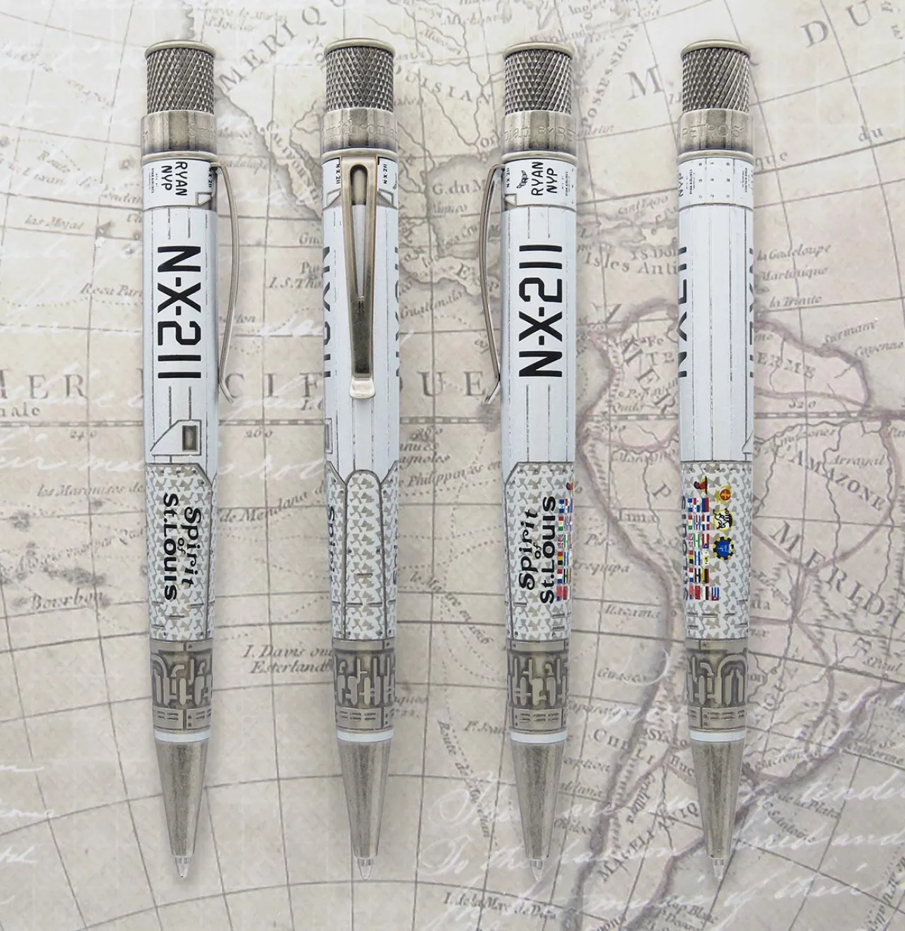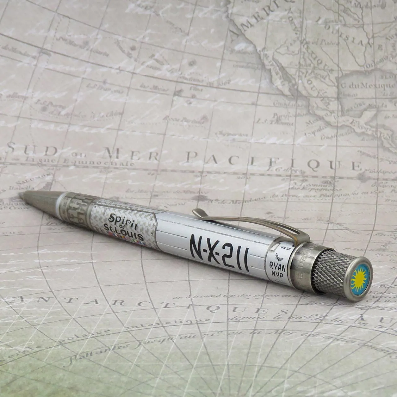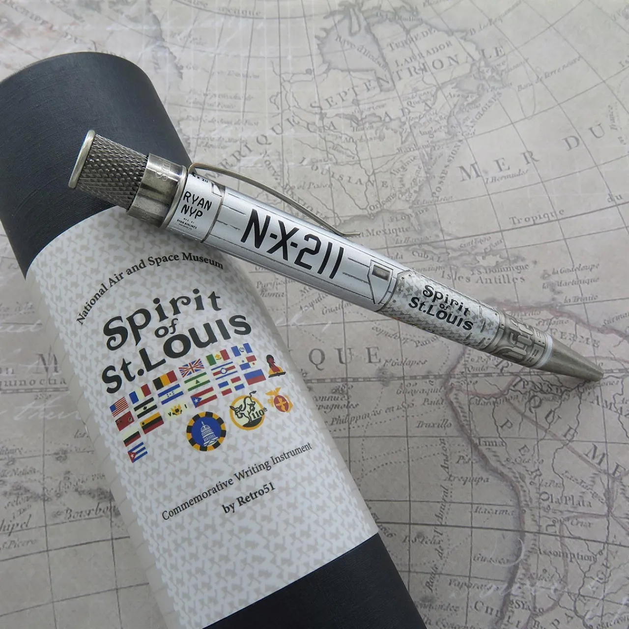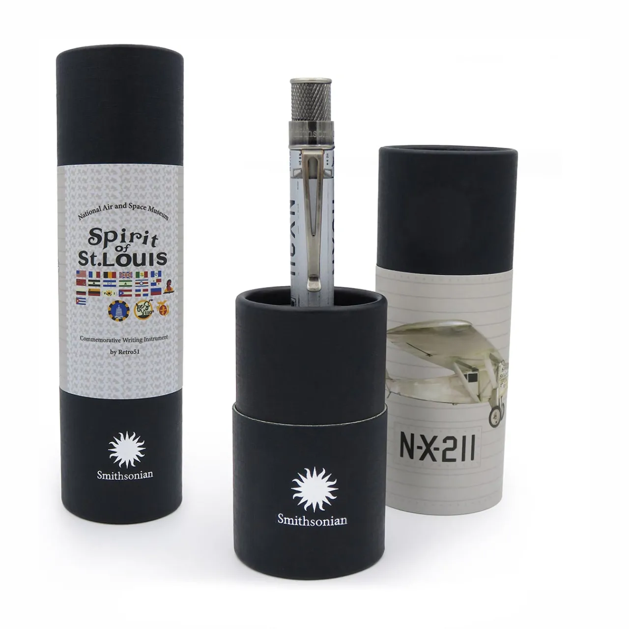 On the morning of May 20, 1927, Charles Lindbergh took off from New York City for Paris in his Ryan NYP monoplane on what would become the first solo non-stop flight across the Atlantic Ocean. Over thirty-three hours and 3600 miles later he would land in France to a roaring crowd. Lindbergh would later tour the US, Central and South America and the Caribbean in his Spirit of St. Louis, which now resides in the Smithsonian. The plane’s graphics and details have been faithfully recreated on Retro 51’s officially licensed Smithsonian Collection capless rollerball through acid-etching and printing on the barrel highlighted by antiqued pewter trim and the Smithsonian name and logo on top. Pick up this token of historical achievement and challenge yourself to unimaginable accomplishments.