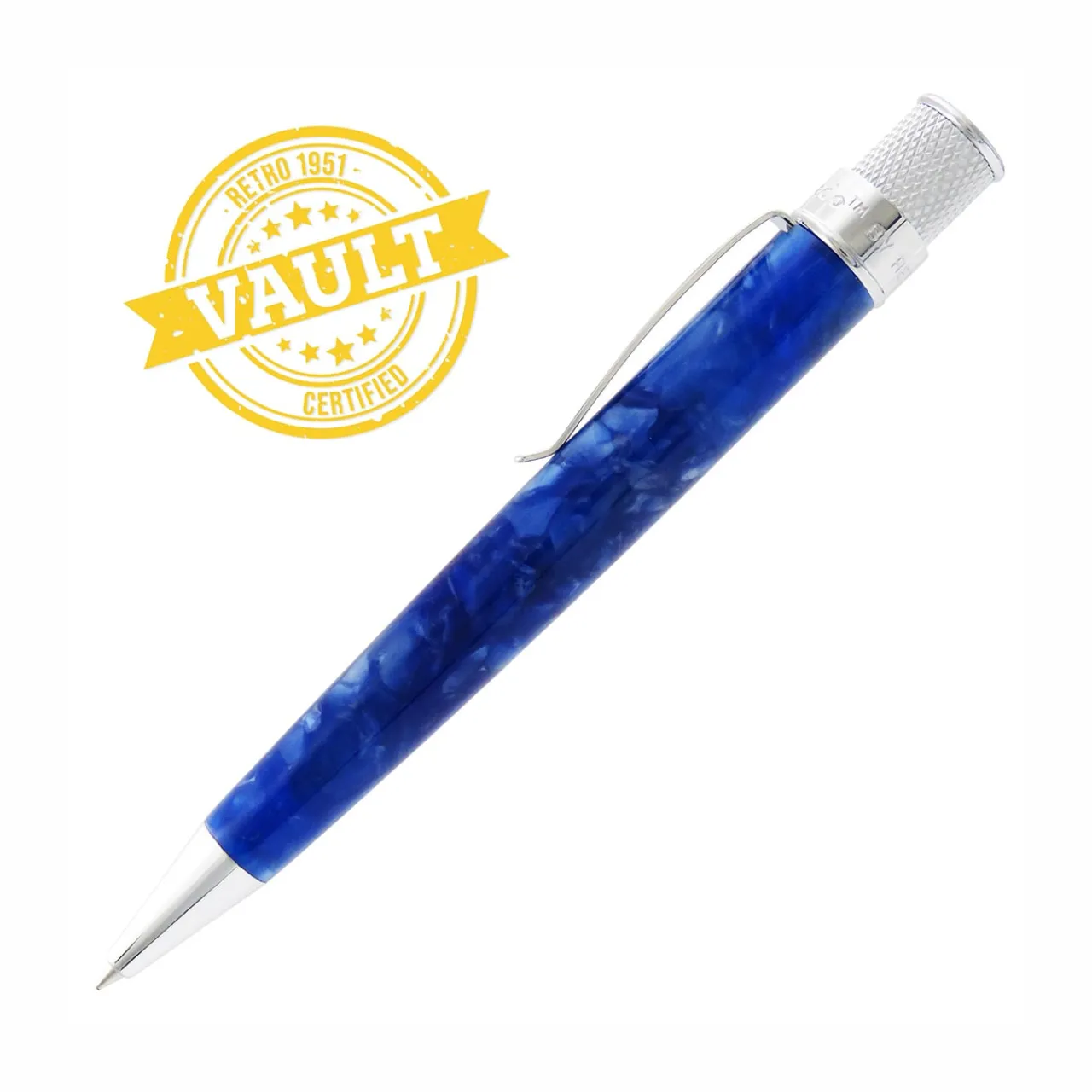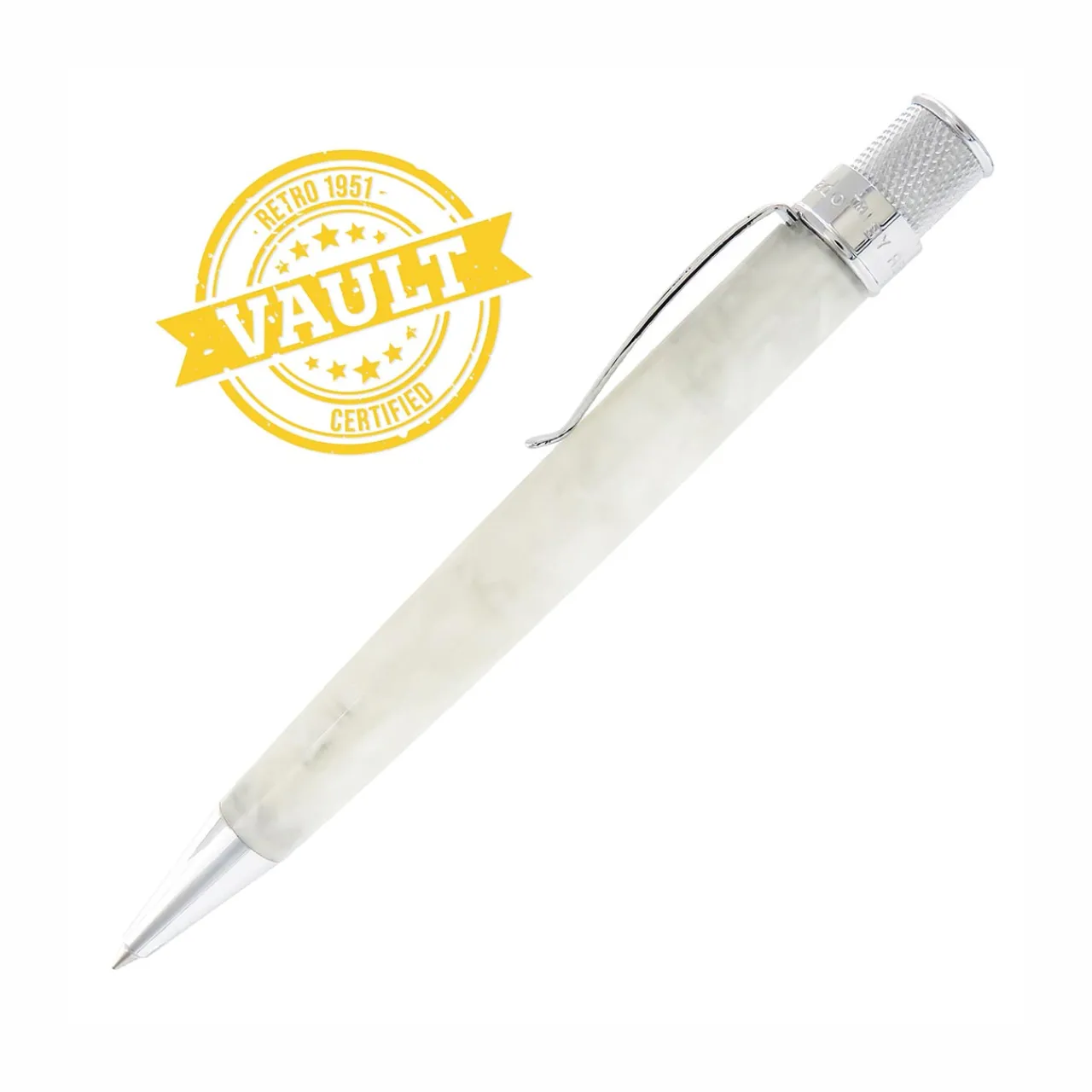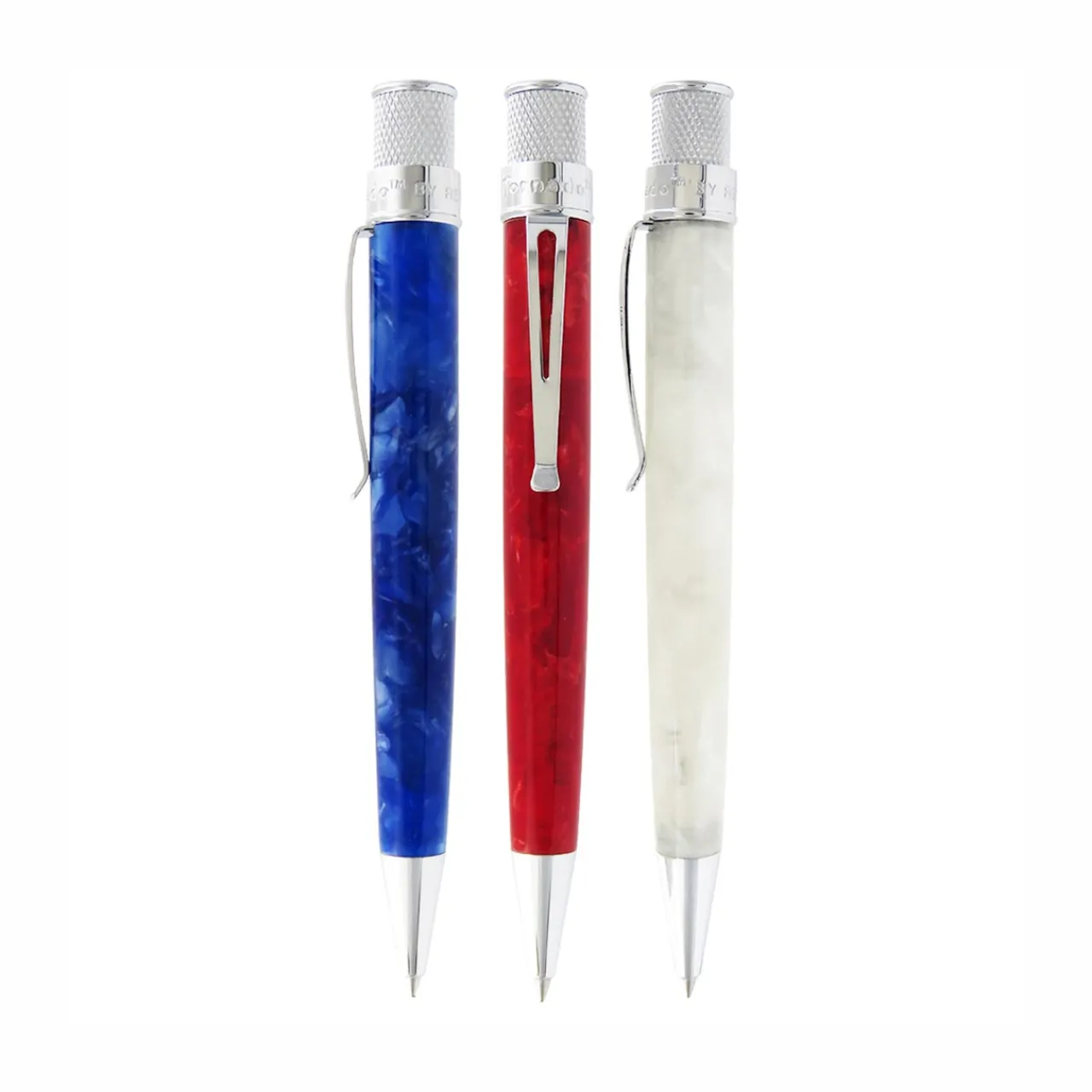 Step into the Retro 51 Vault, where rare treasures await. The Ruby Red, Sapphire Blue, and Opal White Acrylic Tornado Rollerballs have been rediscovered and revived, their polished chrome accents accentuating the luminous beauty of their acrylic barrels. Crafted with timeless precision, these writing instruments are a tribute to the enduring artistry of Retro51. Their vibrant hues remain as striking as the day they were made. Each pen arrives in an assorted Retro 51 storage cylinder which can double as a pen stand. Limited quantities.