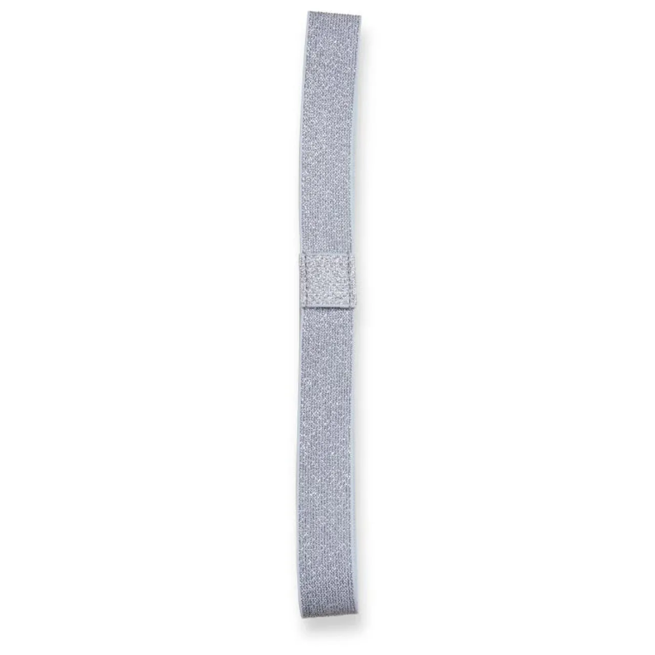 - Elastic Shimmer Notebook belt in silver with pen loop, Letter size: 11W x 1 3/4D