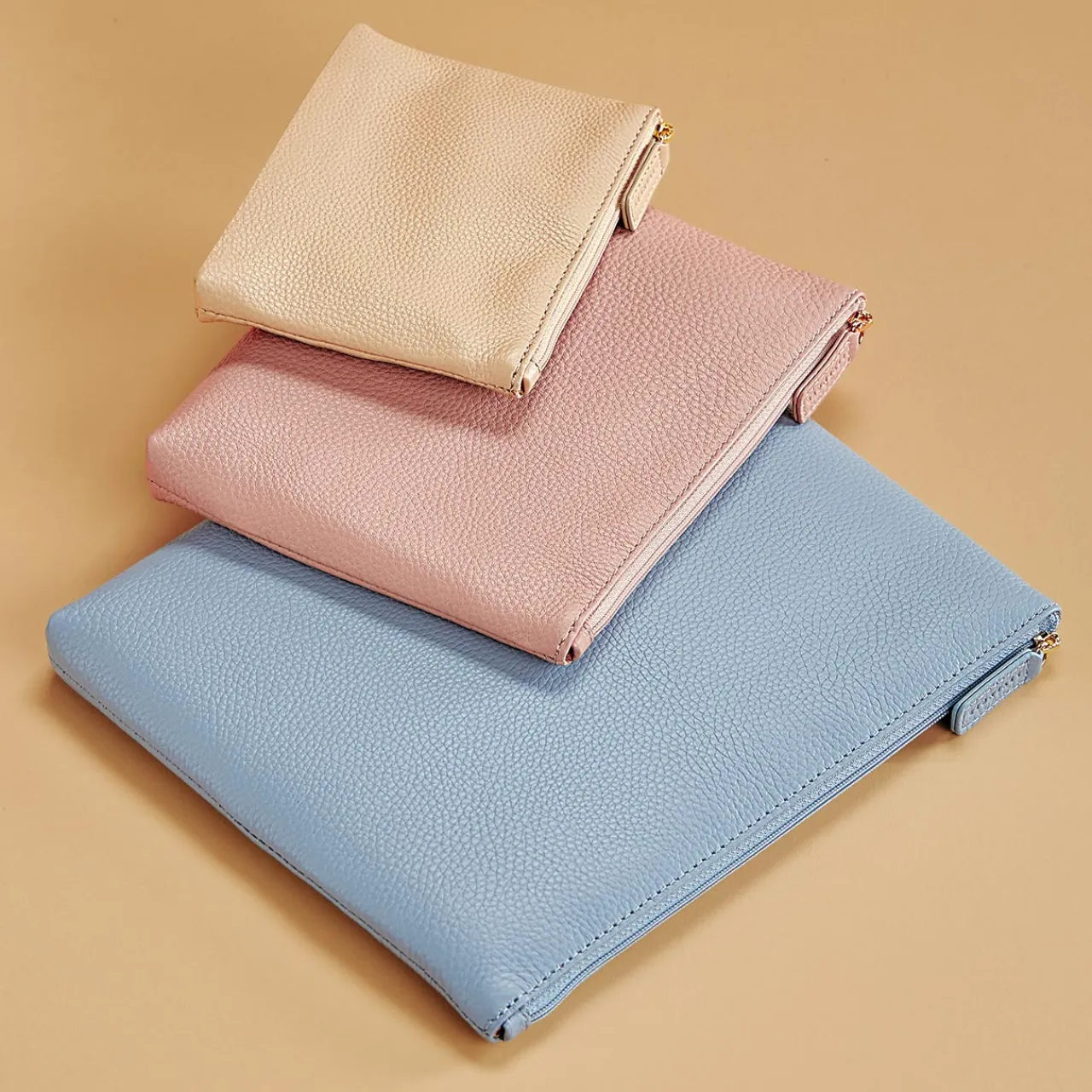 Travel smartly, taking your tech accessories and more along for the ride. Perfect for travel and everyday convenience and crafted in the finest full-grain pebbled leather, this zippered and padded pouch set provides an elegant way to safely organize and store accessories, tech and cosmetics. The large pouch can hold and protect an iPad mini, and the medium and small pouches are great for cords and other smaller essentials. Each padded pouch features an interior slip pocket to offer even more organization.