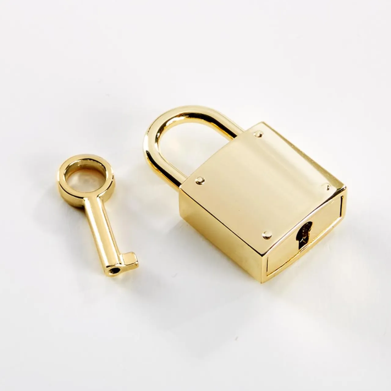 – Light gold tone hardware, lock and key