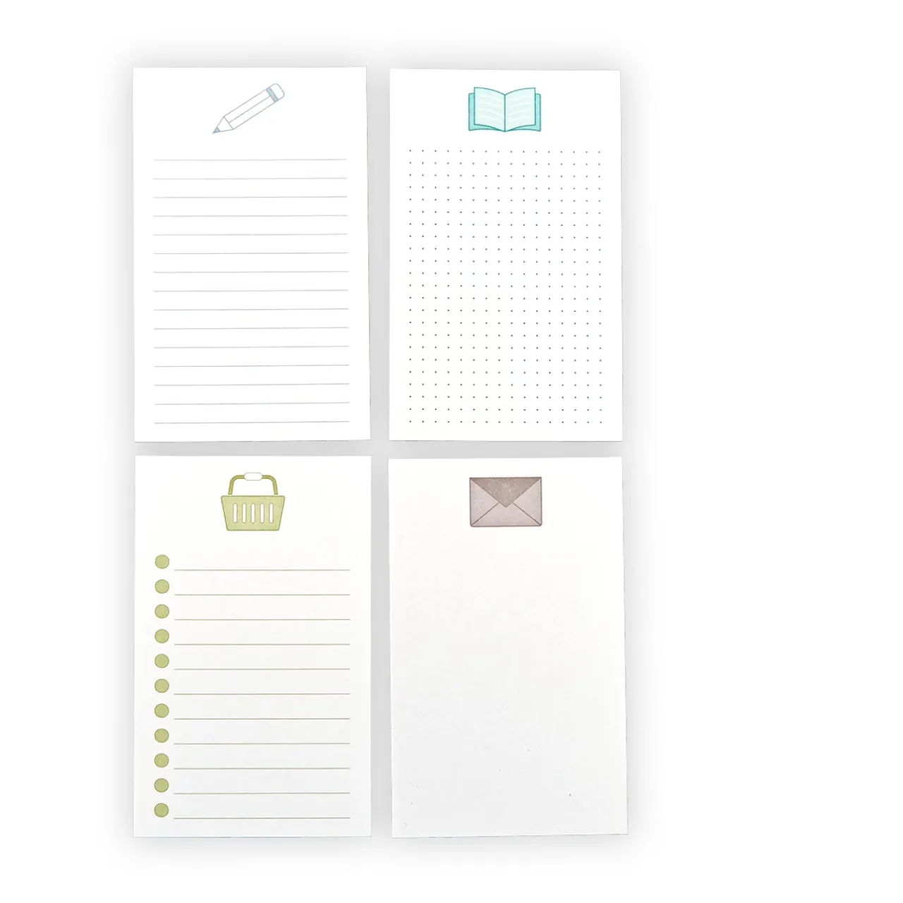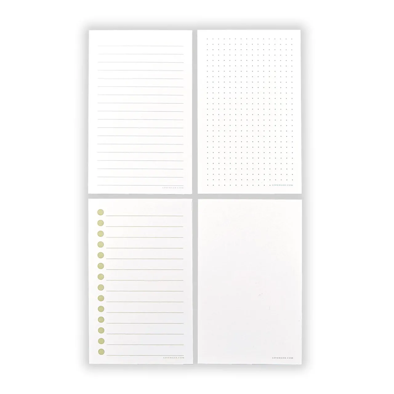 – 100 cards, 25 each of Pencil (ruled), Book (dot grid), Basket (checklist), and Envelope (blank)