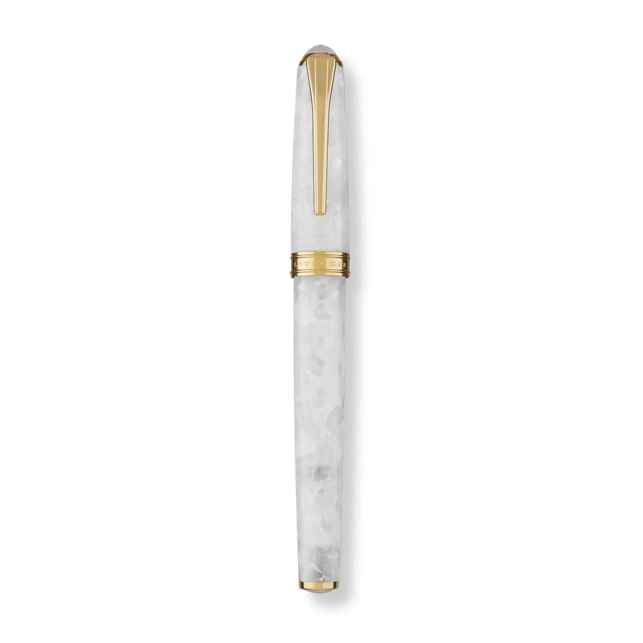 “Nature gives to every time and season beauties of its own.”—Charles Dickens. Elegantly crafted in icy-cool and snowy-white marbled resin spotlighted by shining 24k gold-plated trim and appointments, the True Writer Icicle Pen is designed to deliver crisp and refreshing writing inspiration, winter or summer, year after year. As always, this True Writer pen is perfectly weighted and balanced for a comfortable and consistent writing experience. Personalize it with a 3-initial monogram or full name of up to 16 characters. Rollerball or Ballpoint.