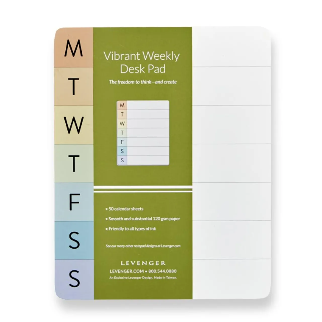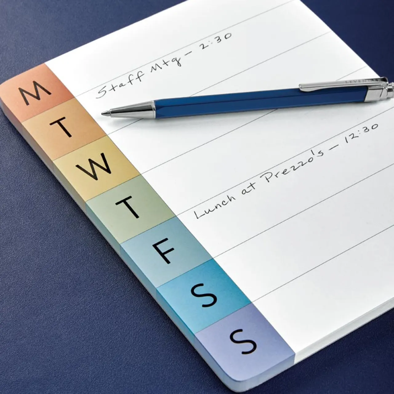 A vividly colorful reminder pad for weekly tasks. Keep track of your schedule in vibrant fashion with this day-by-day undated weekly schedule pad. Ideal for capturing your most important tasks or appointments and tracking daily priorities, this colorful desk pad features seven entries per page, one for each day of the week.