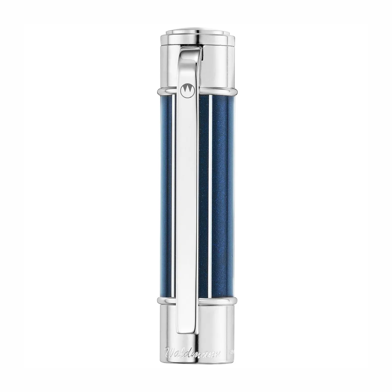 Powerful, robust and always precise when it comes to the finer points, the Waldmann Commander 23 is a reliable writing companion. The multilayered, brilliant black lacquered cap is etched in a fine guilloche pattern, pairing seamlessly with a pinstriped solid sterling silver shaft, polished to a high shine. The solid silver spring-loaded clip is plated in platinum, and the iridium-topped, bi-color nib is crafted in 18 carat gold. Made in Germany. Fine or Medium.