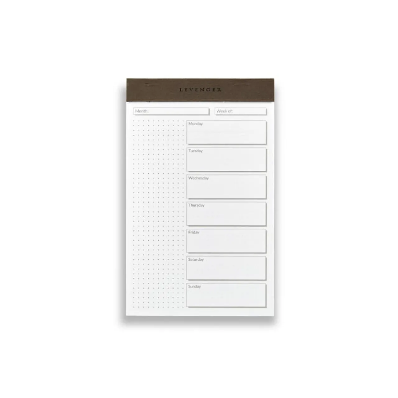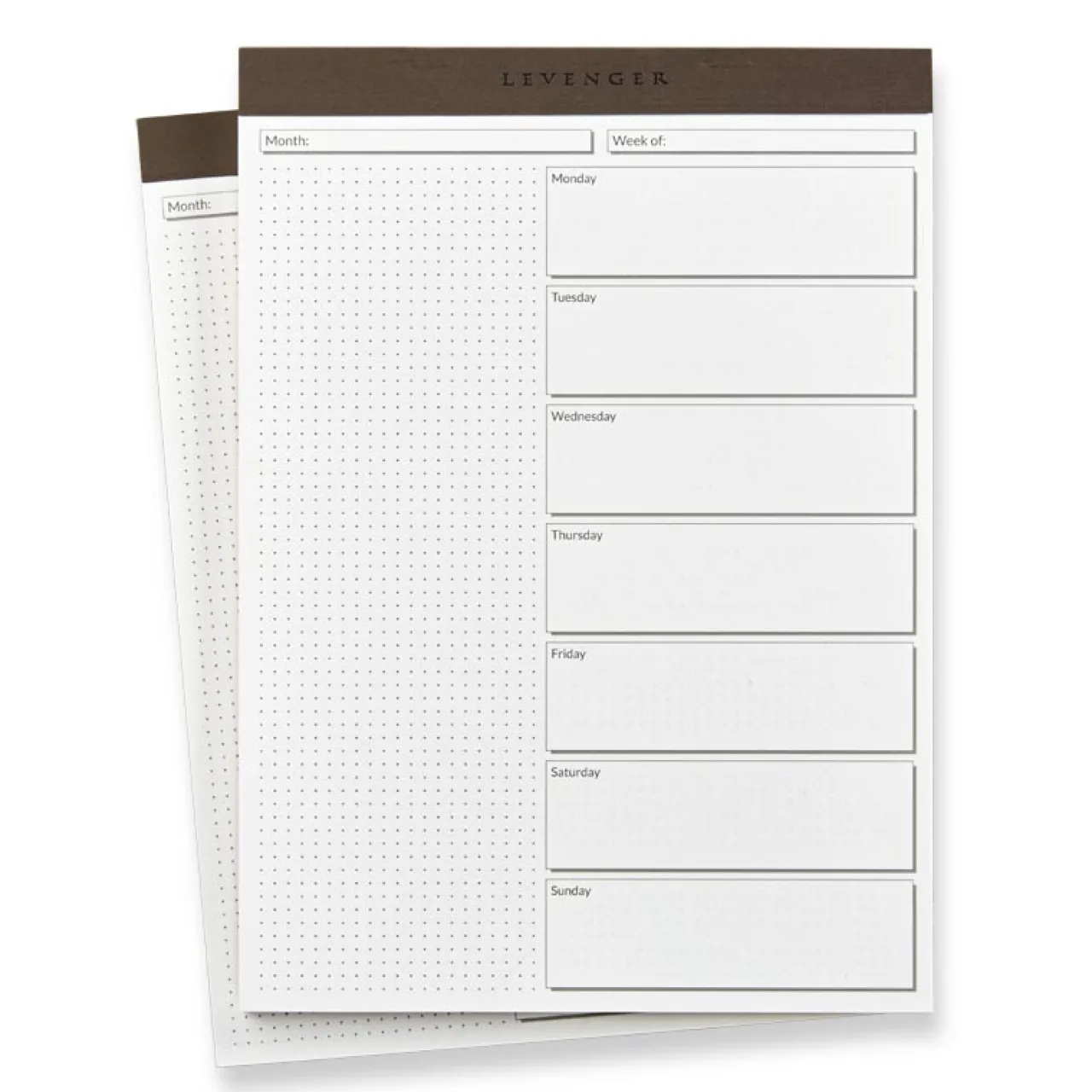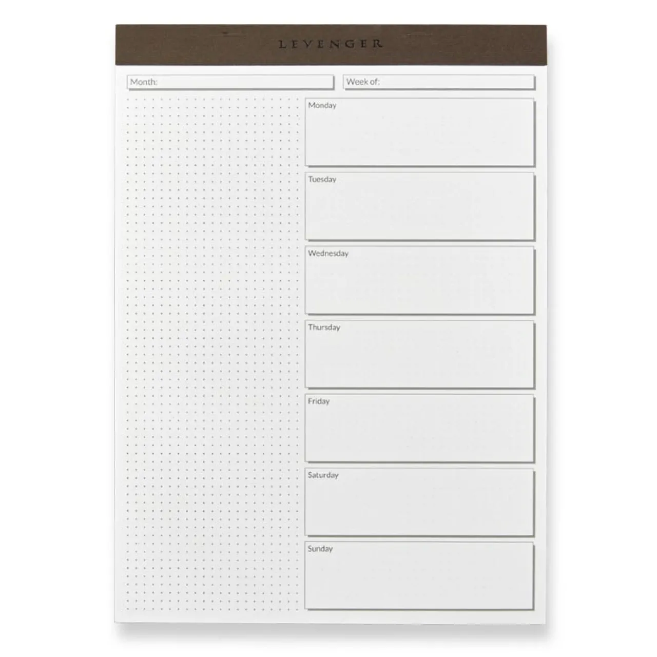 Weekly planner pads on substantial Freeleaf® paper. Prioritize your weekly tasks with this handy scheduler pad featuring smooth and substantial Freeleaf paper. The weekly scheduler format has headings for Month and Week Of on top, boxes for Monday – Sunday on the right and a dot grid pattern on the left for notating.