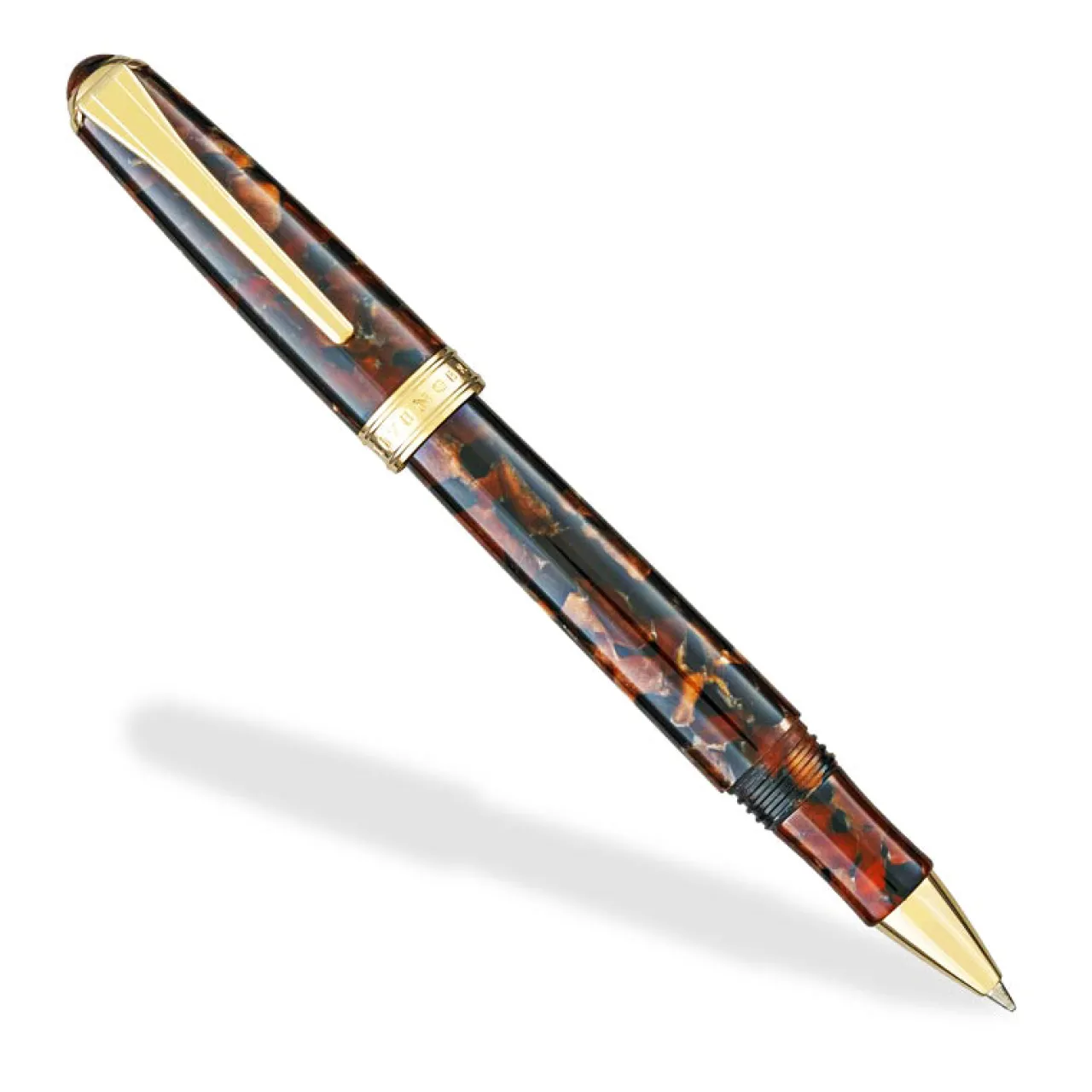 – True Writer Classic Golden Dark Tortoise Rollerball in tortoise resin with gold-plated appointments and threaded cap, 5 3/8L x 9/16 diameter