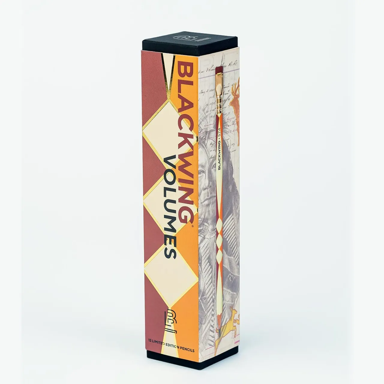 The Blackwing 574 honors the rich artistic traditions of the 574 Native American nations that preserve their culture and identity through creative expression. Designed in collaboration with Kaw, Osage, Lakota artist Chris Pappan, the pencil features bold geometric patterns inspired by Indigenous art. With firm graphite for a smooth writing experience, this limited edition set pays homage to the beauty and significance of Native American artistry. A portion of proceeds supports the Cheyenne River Youth Project, fostering arts programs for Lakota youth on the Cheyenne River Sioux Tribe Reservation. Set of 12.