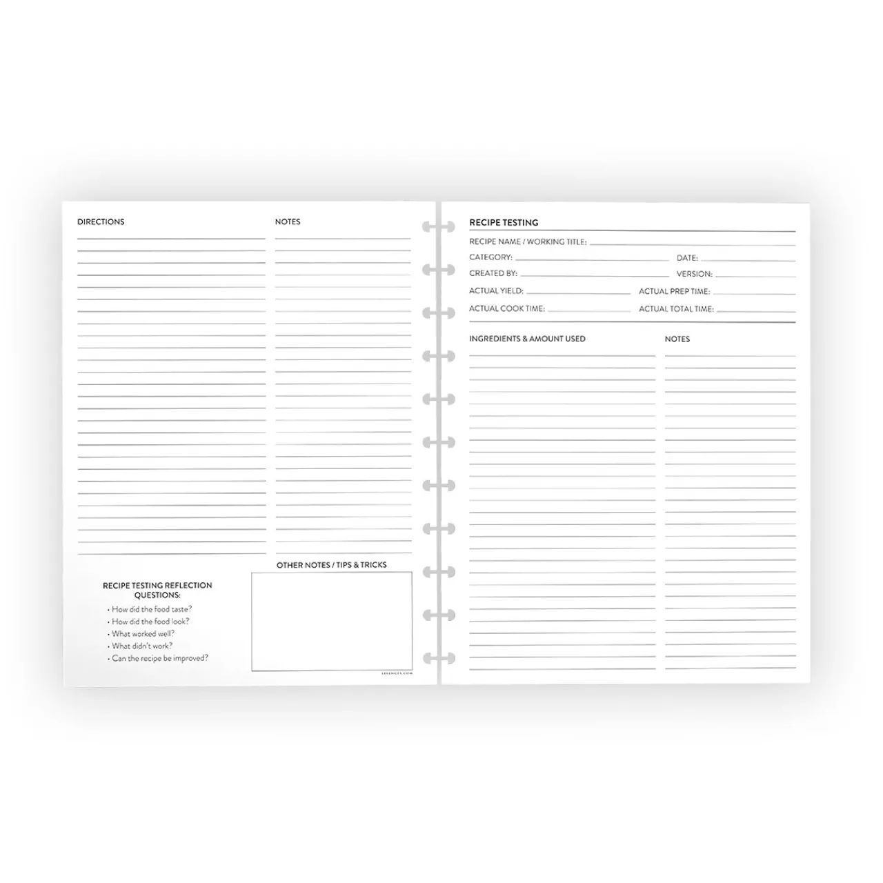 Test your original recipes like the professionals do with the help of Circa® and award-winning TV chef . Designed to use in tandem with Pati’s workbook, these discbound recipe testing refills work just as well on their own in your favorite letter-size Circa® notebook. Based on a format Pati uses to create her own bestselling cookbooks, each recipe testing refill includes sections to capture data and results from each version of your recipe, plus questions for reflection.