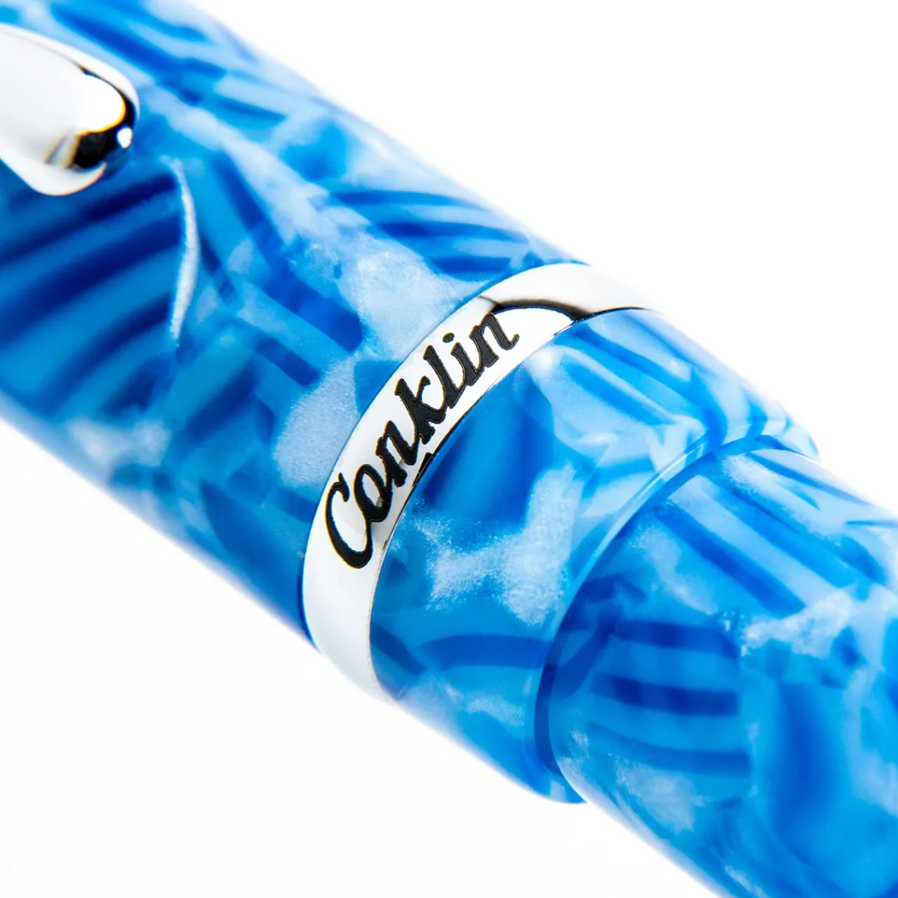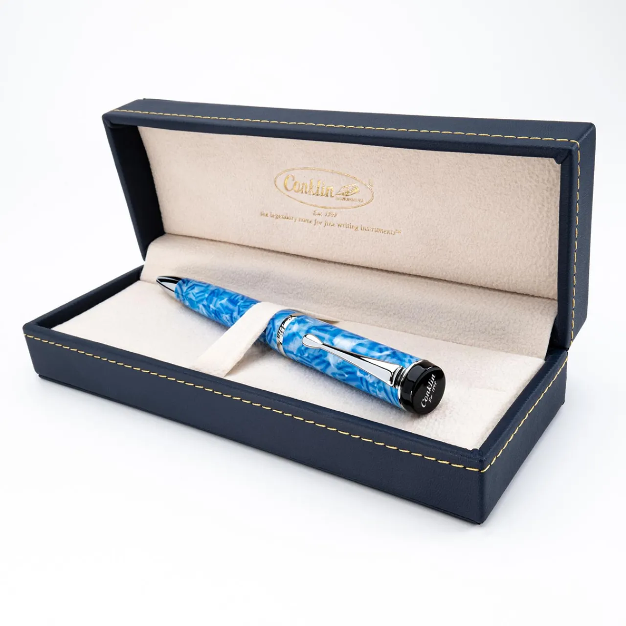 Cool, crisp and captivating, the Conklin Duragraph Ice Blue Ballpoint Pen brings a refreshing touch to the iconic Duragraph line. Handcrafted from premium European-grade acrylic resins, its icy blue finish shimmers with depth, evoking frosted glass and crystalline waters. Both striking and elegant, this design reflects Conklin’s tradition of fine craftsmanship since 1898. The Ice Blue features the Conklin® Est. 1898 logo on its cap top, while the engraved band proudly displays the classic Duragraph™ script flanked by three crescent logos. A top-mounted clip ensures the pen sits securely and low in the pocket, combining style with everyday practicality.