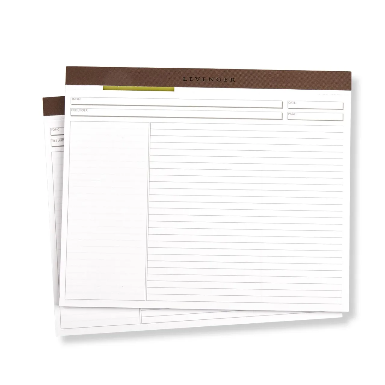 Our annotation ruled Freeleaf® notepads in a horizontal format. With a wide left margin for calling out key points and action items, compatible with the Cornell method of taking notes, this landscape version of our best-selling annotation ruled pad gives writers a wider berth than the traditional vertical portrait format. Our Freeleaf notepad paper is smooth and substantial, friendly to all types of pen and ink and made with warm white 100-gsm paper stock, with a firm cardboard pad backer.