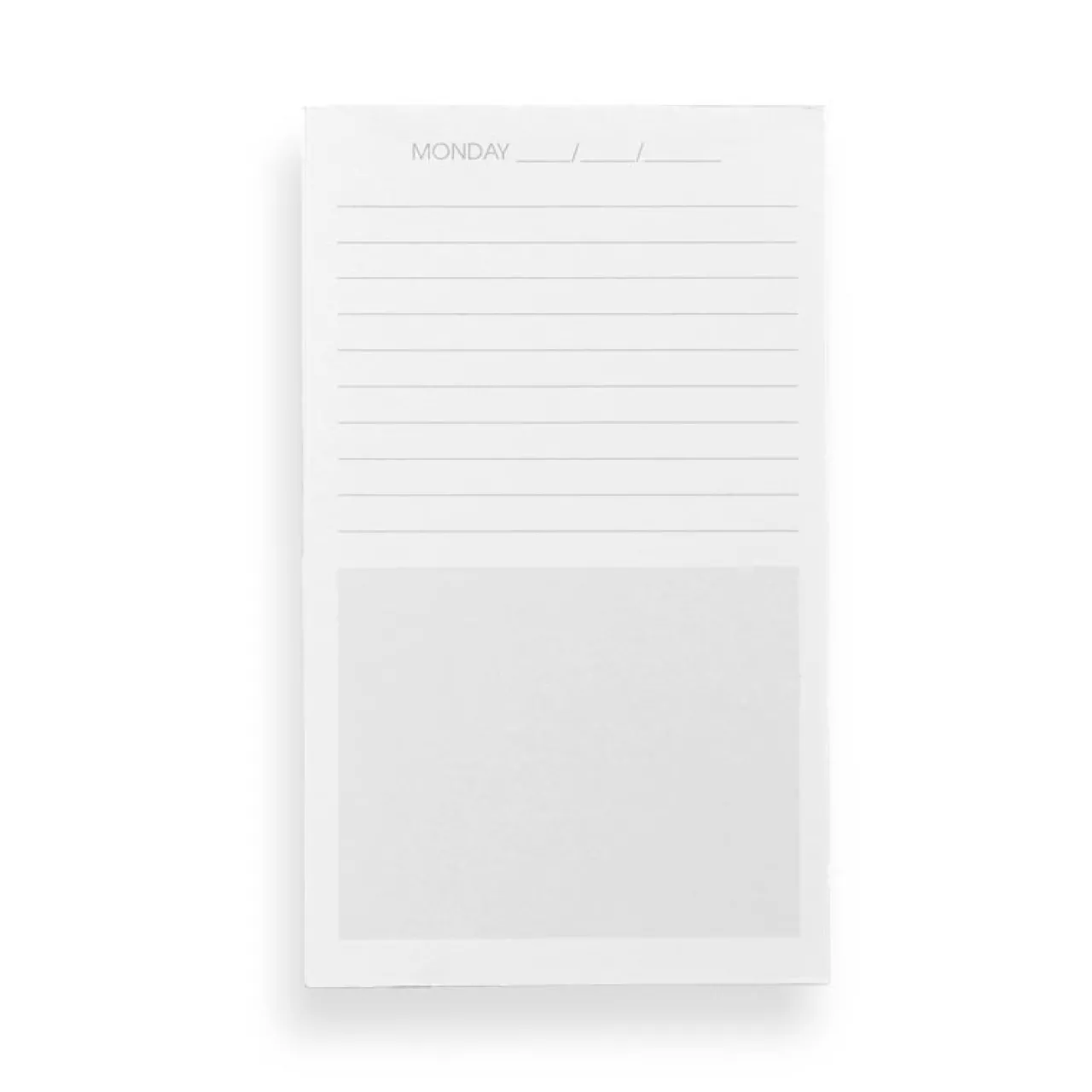 – Undated planner with ruled lines and shaded blank areas for writing appointments, notes or lists on each day of the week