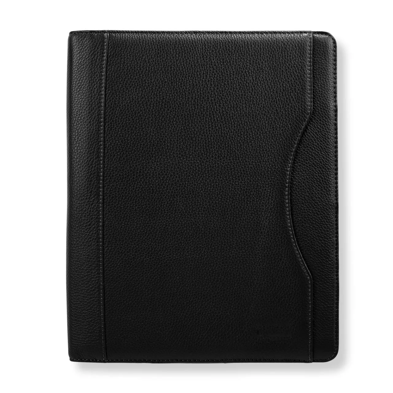 The leather portfolio with a secret compartment. The Tuckaway Leather Folio is a classic padfolio plus a handy front pocket, crafted in our richly pebbled, full-grain leather. Inside are two more pockets on the left and four card slots, plus a pen loop in the center. Tuck important or timely documents (or your phone or small tablet) in the front pocket for easy access. We include our premium Freeleaf Annotation Ruled Pad. Personalize it with an optional 3-initial monogram or full name up to 16 characters.